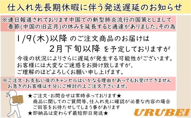 1/28更新※重要※仕入れ先長期休業に伴う発送遅延のお知らせ | ライフスタイルを広げる海外ファッションサイト URUBEI Fashion & Pet