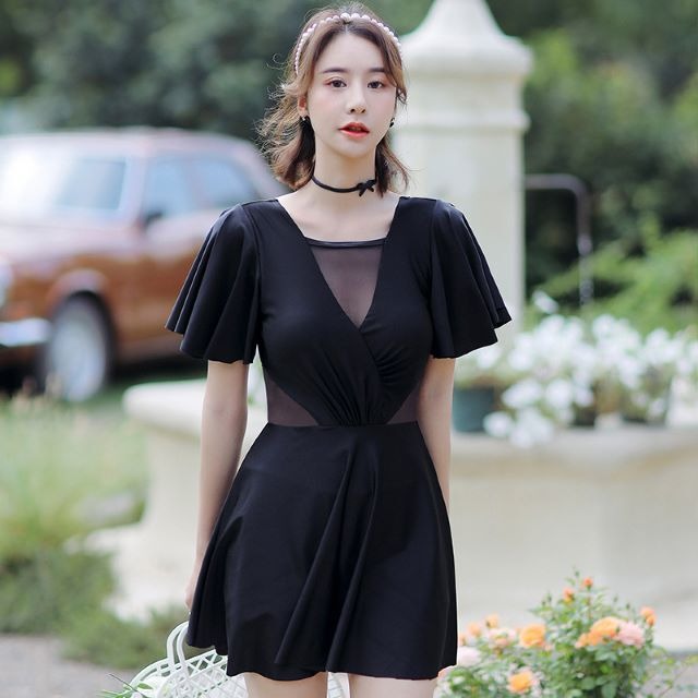 《入荷待ち》 スウィート 可愛い 大人っぽ 透け感 体型カモフラージュ ワンピース水着