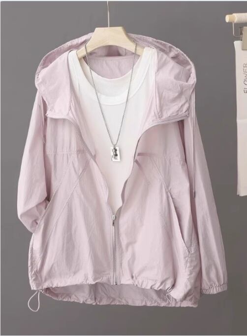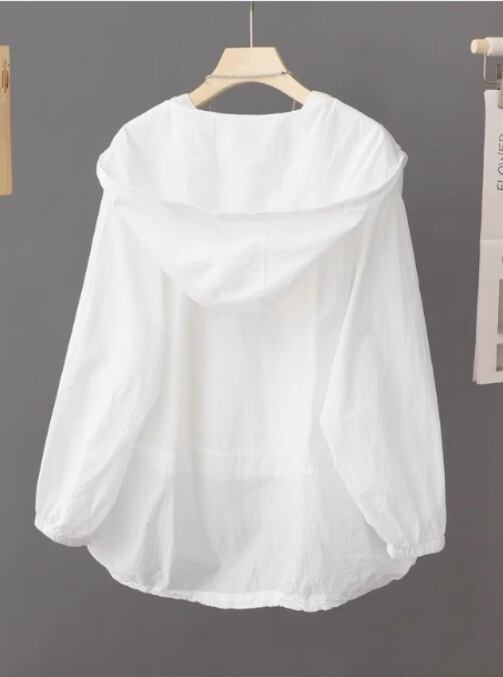白パーカー レディース / 日焼け防止 上着 / 薄手ジャケット / 春夏 アウター / 韓国風 カジュアル