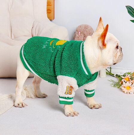 犬服 スタジャン ジャケット 秋冬 おしゃれ スポーツ風 パーカー 防寒 フレンチブルドッグ トイプードル チワワ ダックス 小型犬 中型犬 18番デザイン ペットウェア 犬用 洋服 グリーン