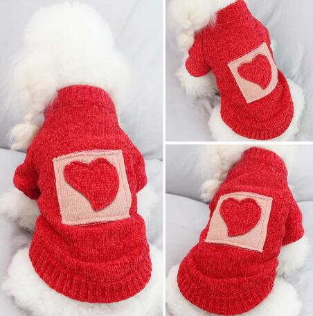 犬服 セーター ハート ニット 小型犬 秋冬 防寒 かわいい 赤 おしゃれ ドッグウェア トイプードル チワワ ポメラニアン マルチーズ