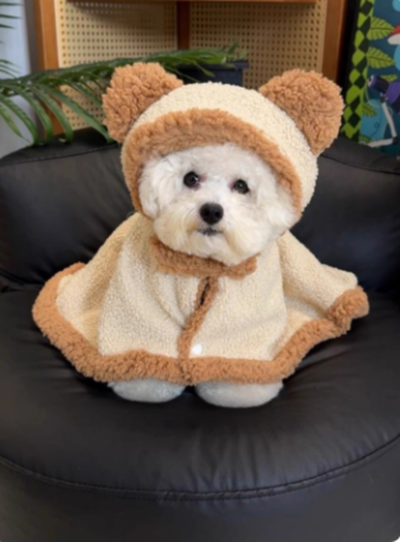 犬 服 ポンチョ 冬 クマ耳 フード付き もこもこ ケープ 小型犬 中型犬 防寒 着ぐるみ風 おしゃれ かわいい