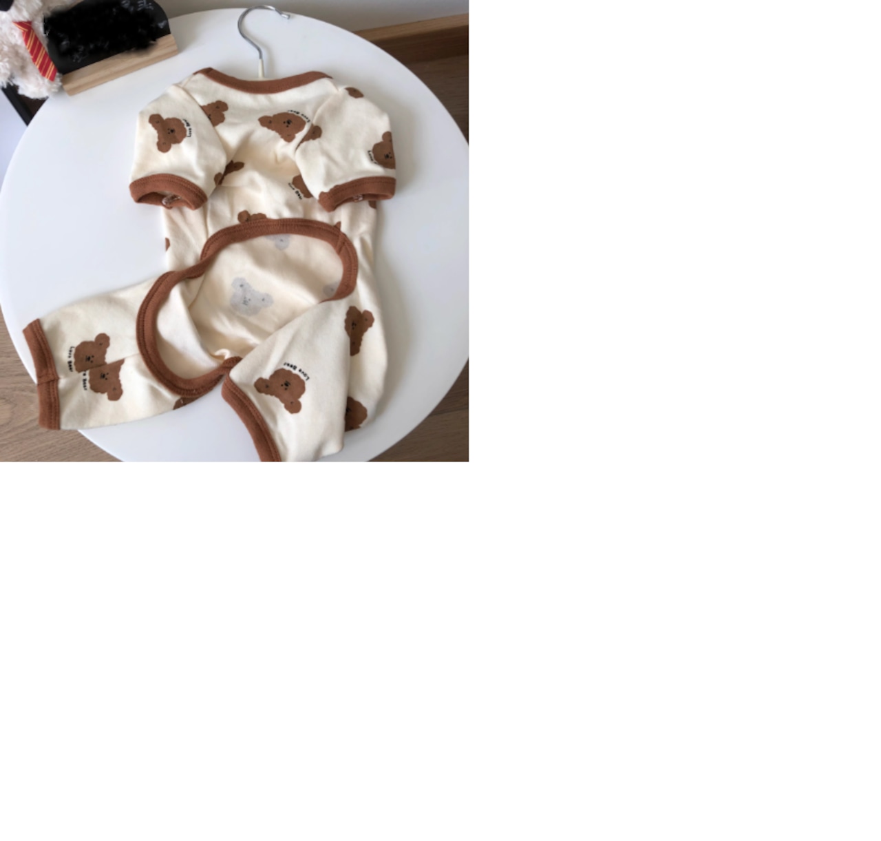 淡いブルーにくまさん柄が散りばめられたデザイン。着せるだけでまるでぬいぐるみのような可愛さに♡ 写真映えもバッチリで、SNS用のおしゃれショットにもぴったりです。