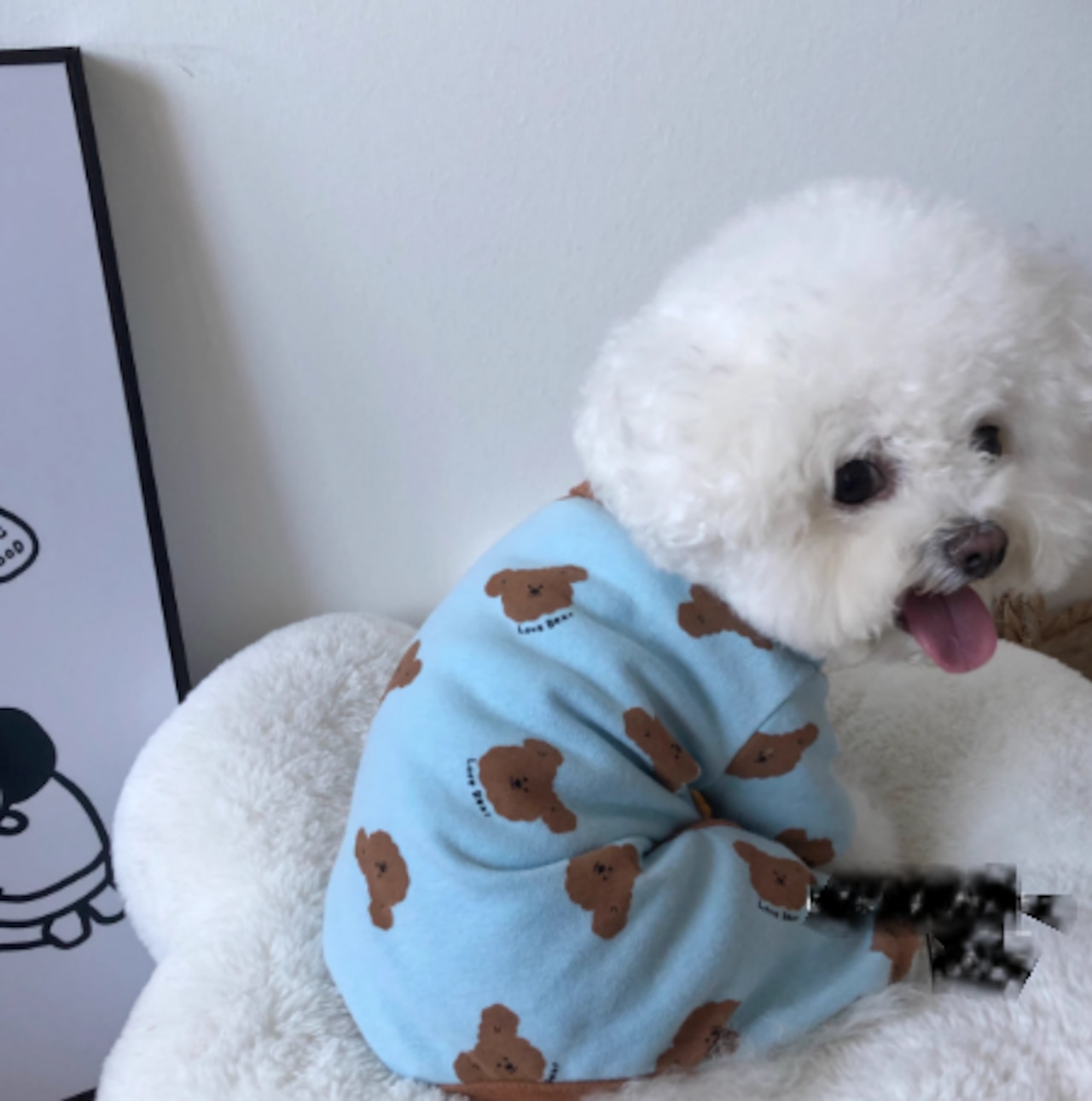 犬 服 パジャマ 冬 春 秋 小型犬 中型犬 テディベア柄 つなぎ ロンパース 部屋着 防寒 かわいい