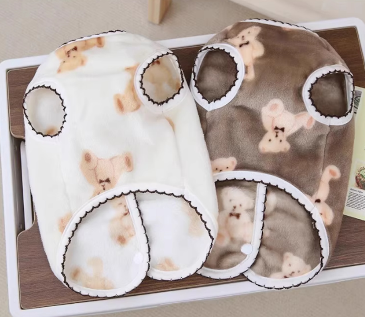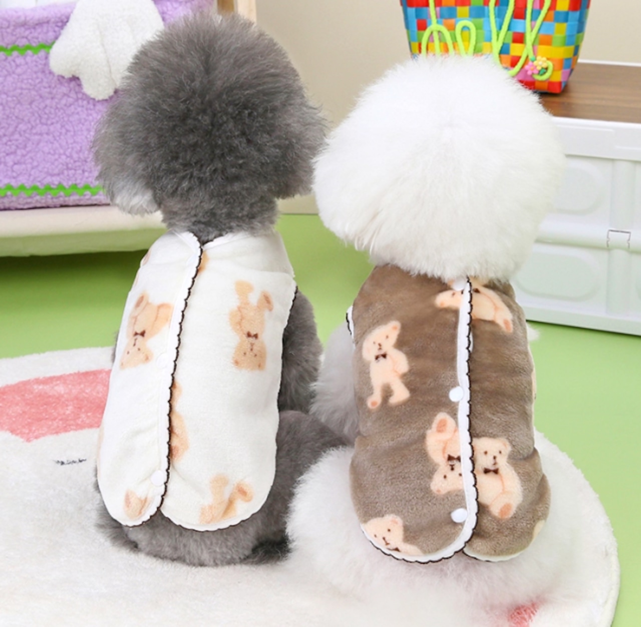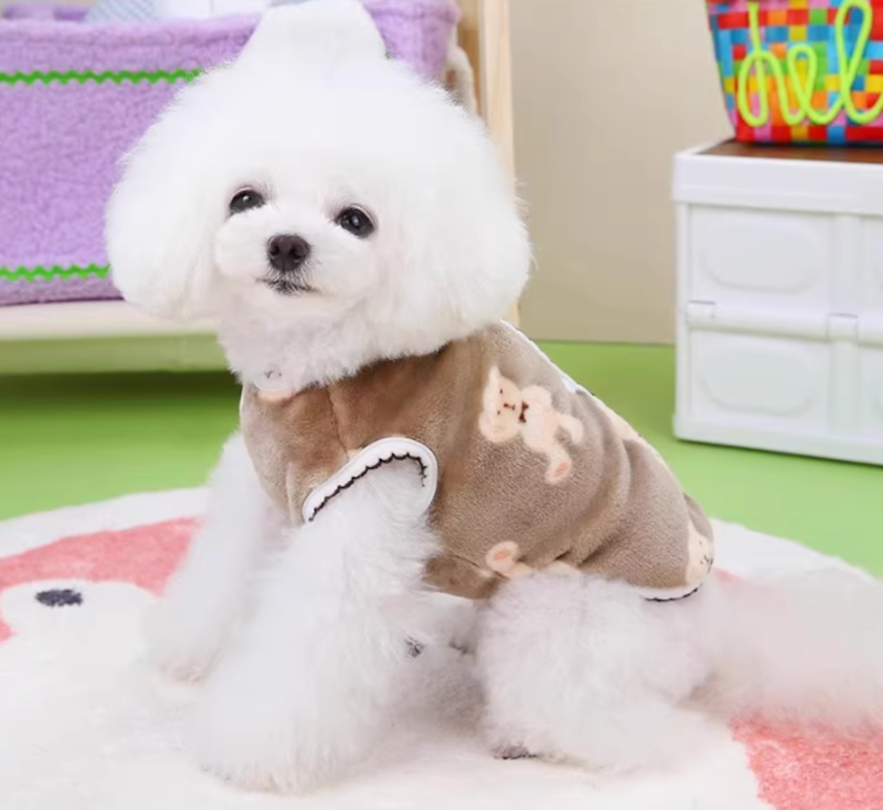 犬 服 冬 秋 小型犬 中型犬 ベスト ベア柄 もこもこ 防寒 ウェア 室内着 かわいい