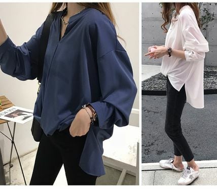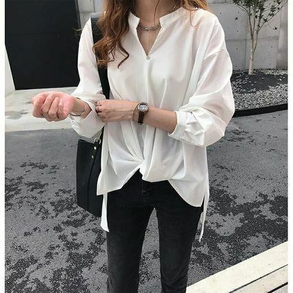 《入荷待ち》キレイめ スキッパーブラウス シャツ 通勤 オフィス シンプル とろみシャツ 長袖 ロングテール こなれ オシャレ