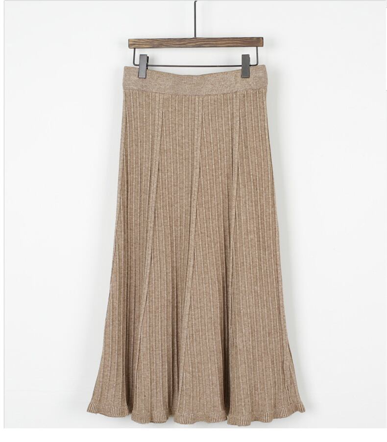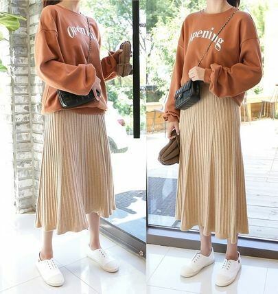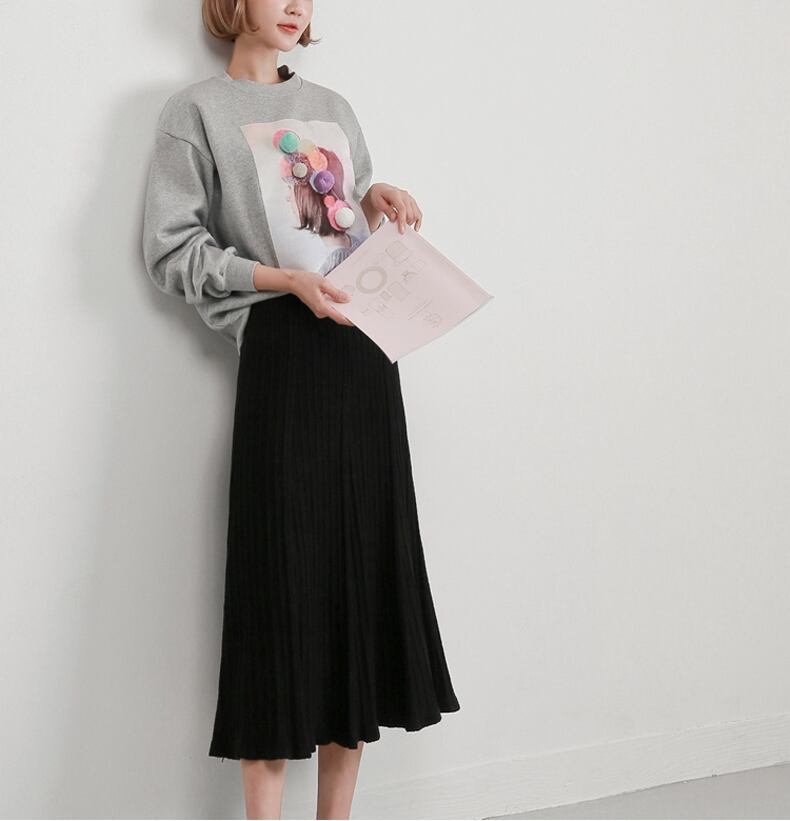 プリーツ ニットスカート ウエストゴム シンプル ロング丈 ミディ丈 こなれ感 大人女子 ブラック ベージュ グレー