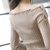 《入荷待ち》オフショルダー トップス カットソー 長袖 リブ リボン 大人可愛い フリル デート お呼ばれ シンプル