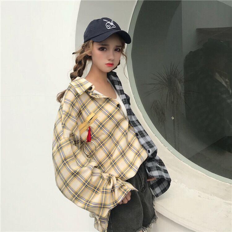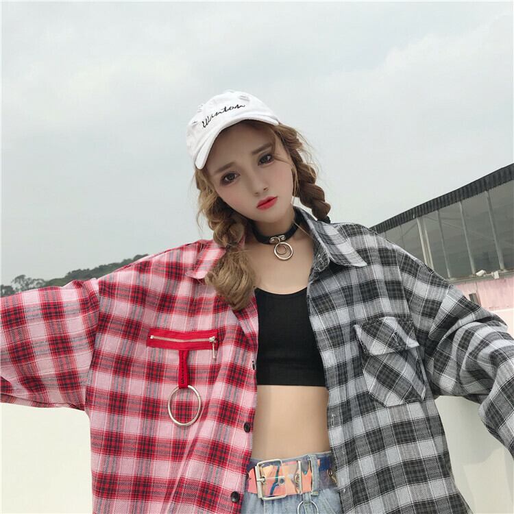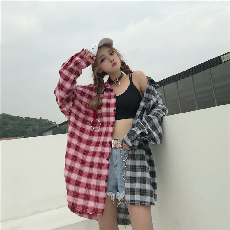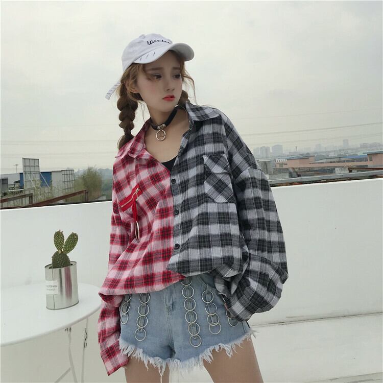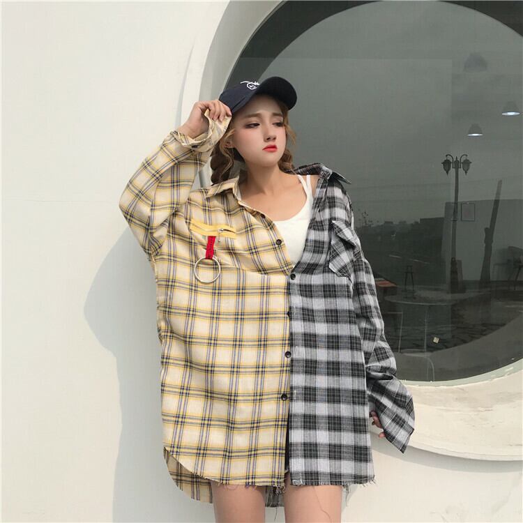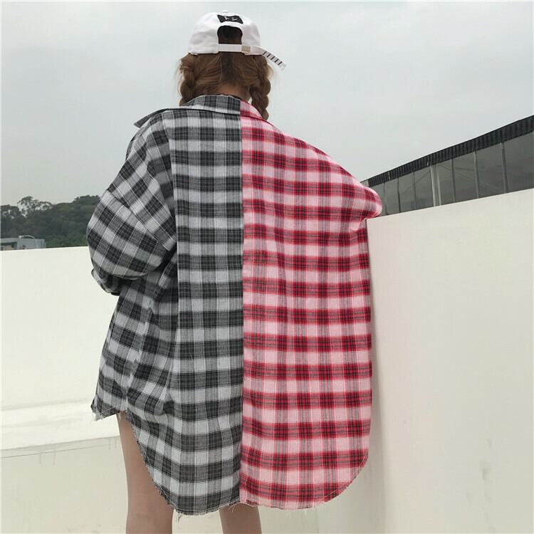 《入荷待ち》オーバーサイズ カジュアル チェックシャツ ツートン ビックシルエット 個性的 大きいサイズ