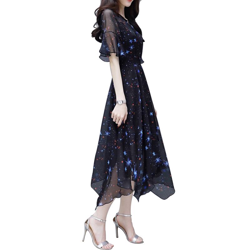 《再入荷》ドレス ワンピース シースルー チュール 透け感 ミモレ丈 ネイビー 五分袖 ハイウエスト 大きいサイズ 大人可愛い フェミニン 春 夏