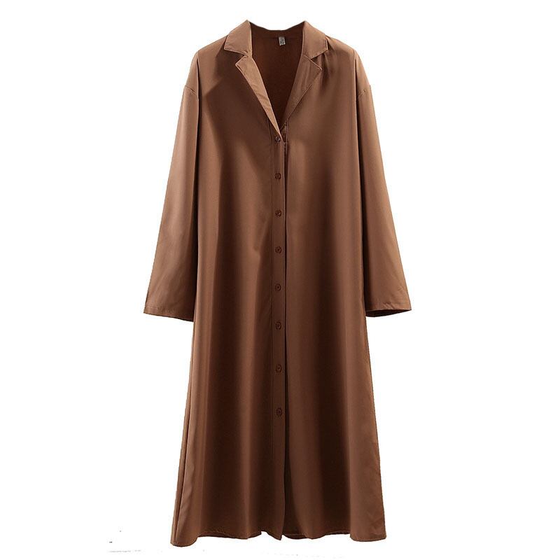 ワンピース シャツワンピース Vネック 七分袖 ロング丈 無地 シンプル 大人可愛い きれいめ オフィス お出かけ