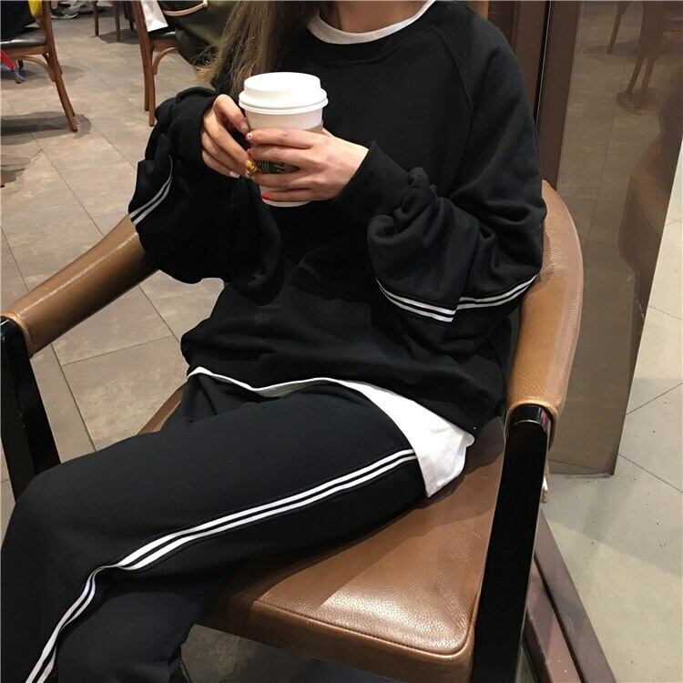《入荷待ち》セットアップ プルオーバー ジャージ ライン ブラック こなれ感 スポーティー カジュアル トレンド 大きいサイズ