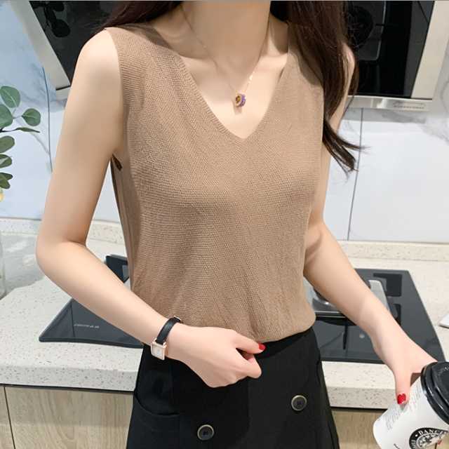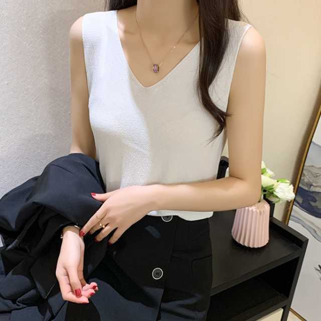 《入荷待ち》タンクトップ ノースリーブ Vネック 夏 春 シンプル 無地 こなれ オシャレ