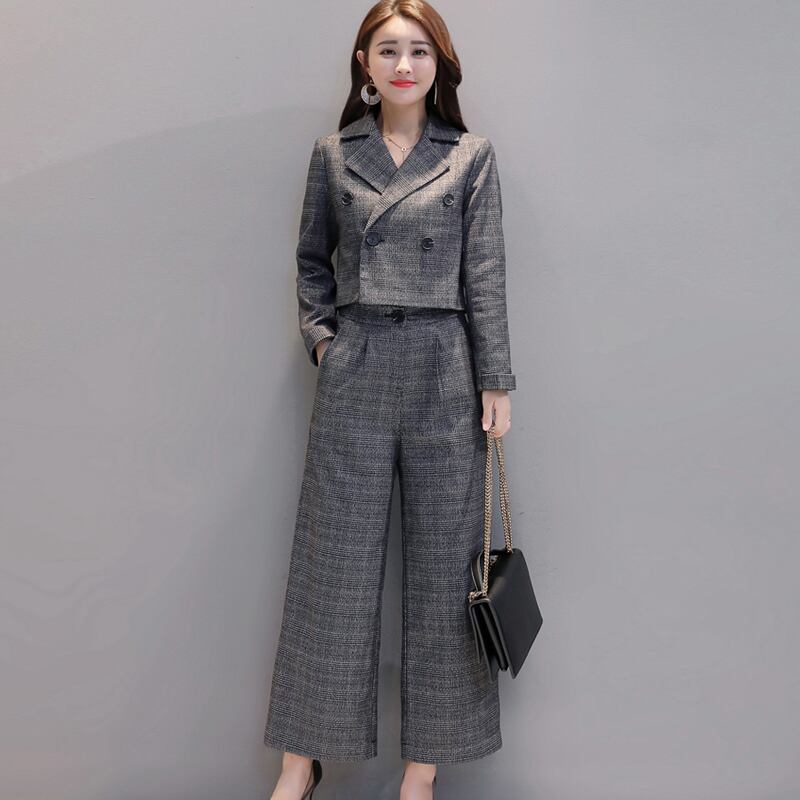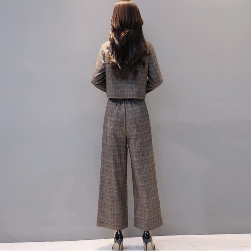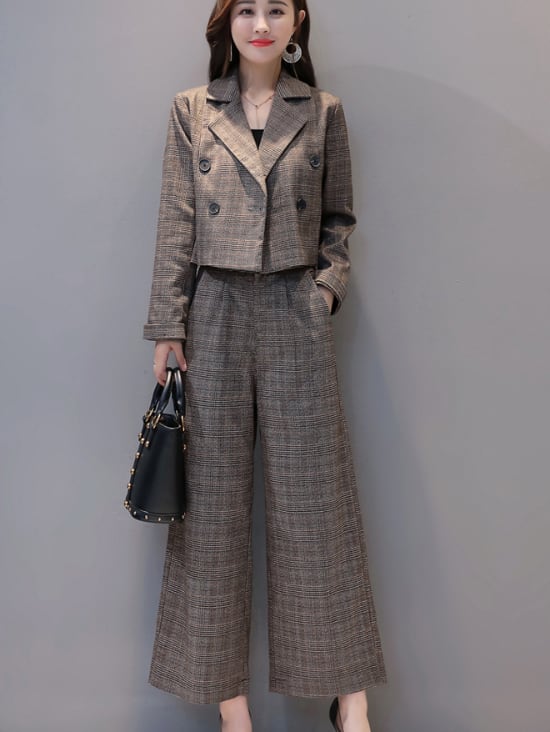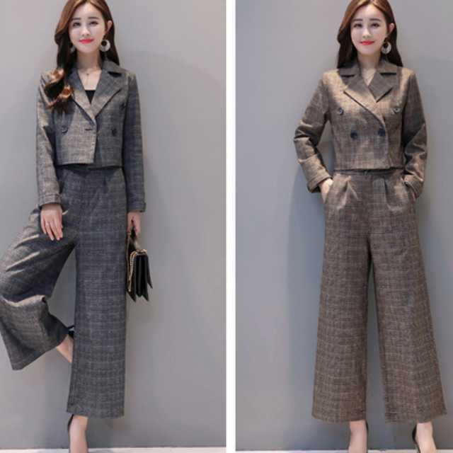 《入荷待ち》セットアップ ツーピース スーツ ワイドパンツ グレンチェック グレー ブラウン 通勤 入園式 入学式 卒業式 お呼ばれ