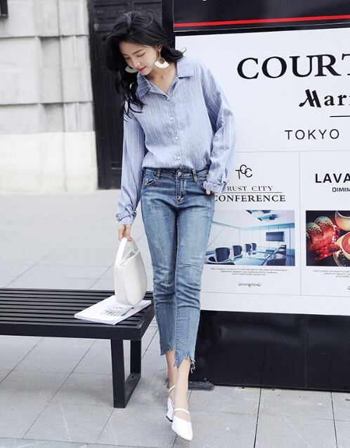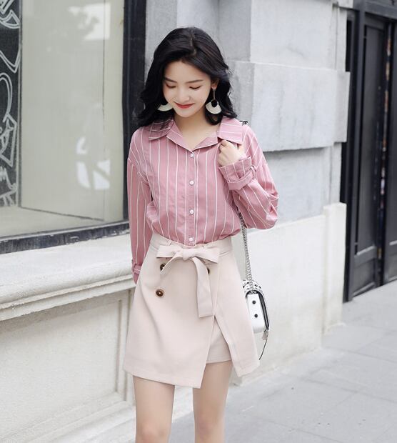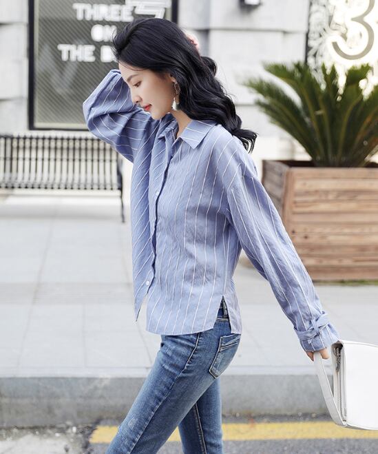 《入荷待ち》シャツ ブラウス ストライプ ピンク ブルー 長袖 フリル袖 通勤 オフィスカジュアル デート お呼ばれ 女子会 春 夏