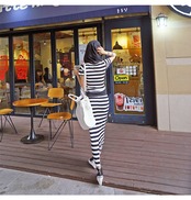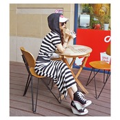 《入荷待ち》セットアップ ツーピース ロングスカート スリット 半袖 フード付き パーカー ボーダー カジュアル マリン Vネック お出かけ 休日 夏 モノトーン ブラック×ホワイト