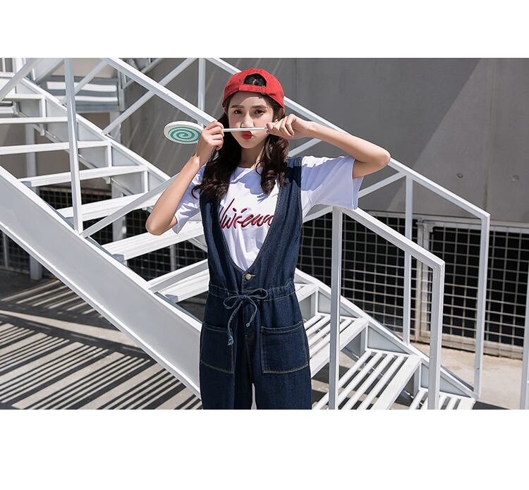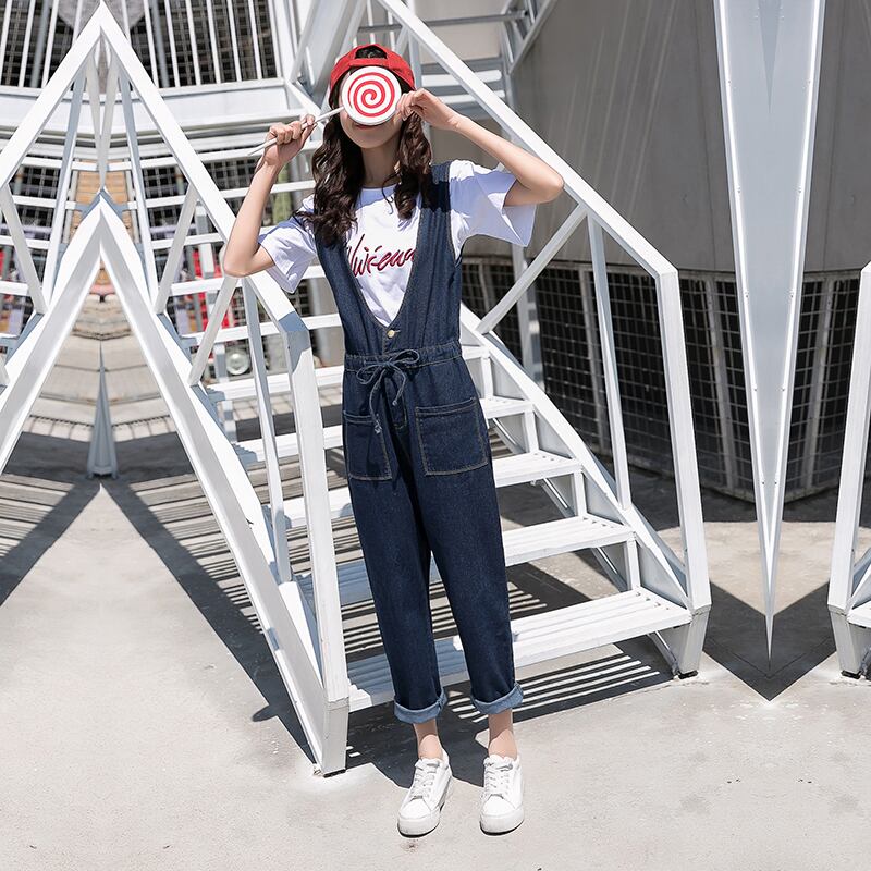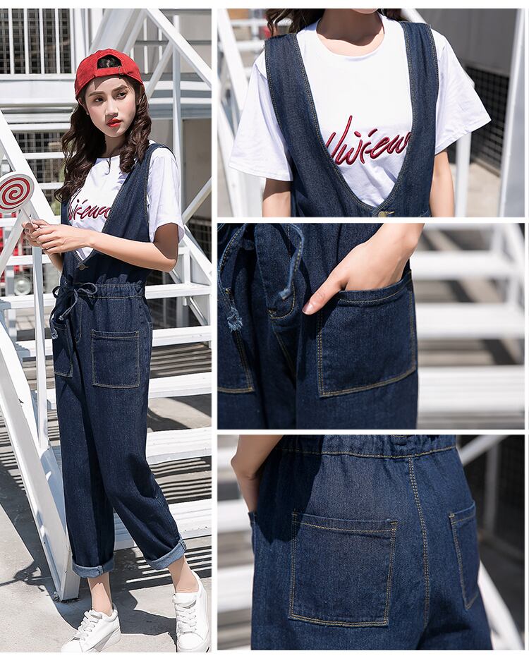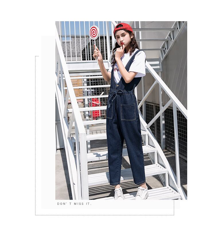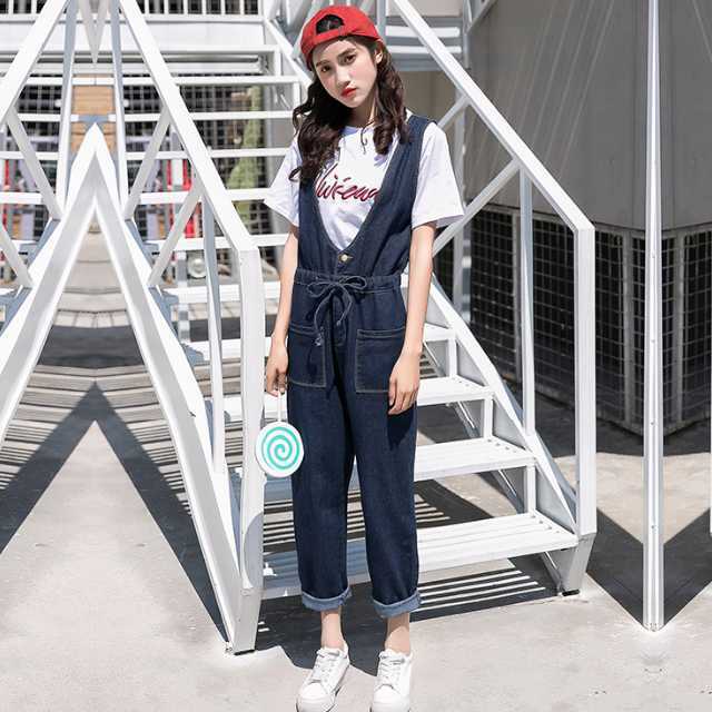 《入荷待ち》オールインワン サロペット オーバーオール インディゴブルー デニム パンツ つなぎ ハイウエスト ウエストマーク リボン カジュアル 大人可愛い 大きいサイズ