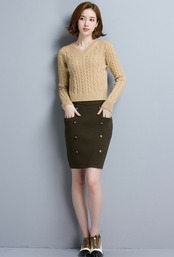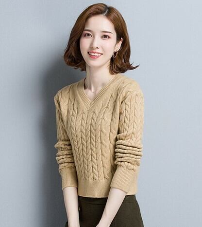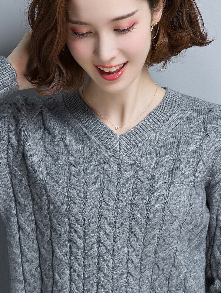 すっきりとしたシルエットのVネックニット。