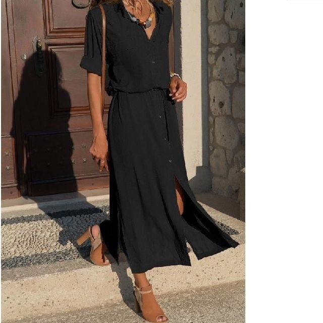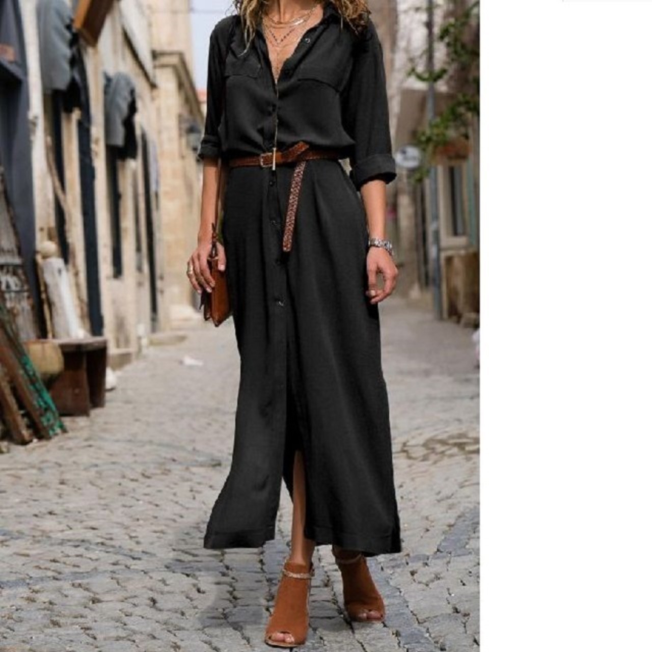 《入荷待ち》ワンピース シャツワンピース ロング丈 長袖 スリット ゆったり お出掛け デート