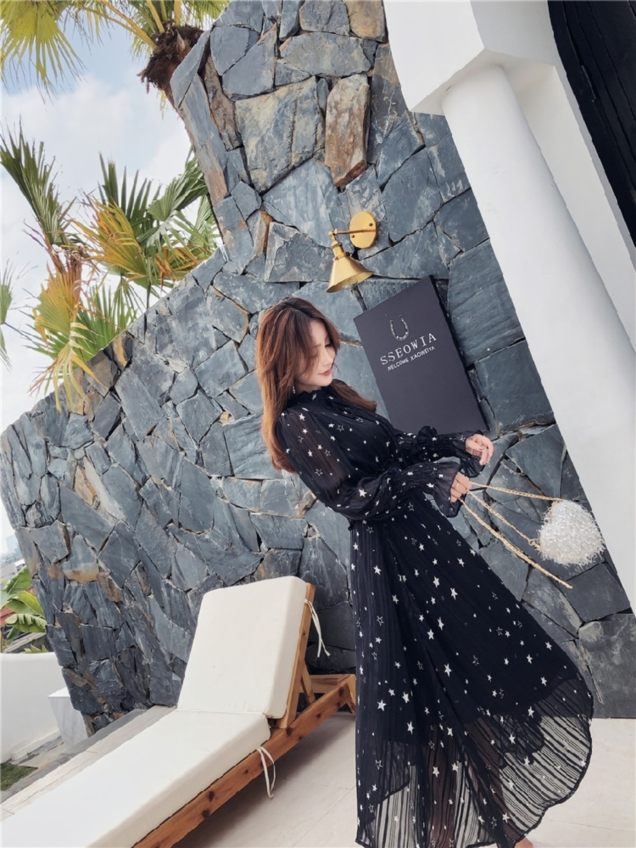 全体にあしらった星柄と透け感のある素材で重くなり過ぎず、ほどよい抜け感をプラスしてくれます。