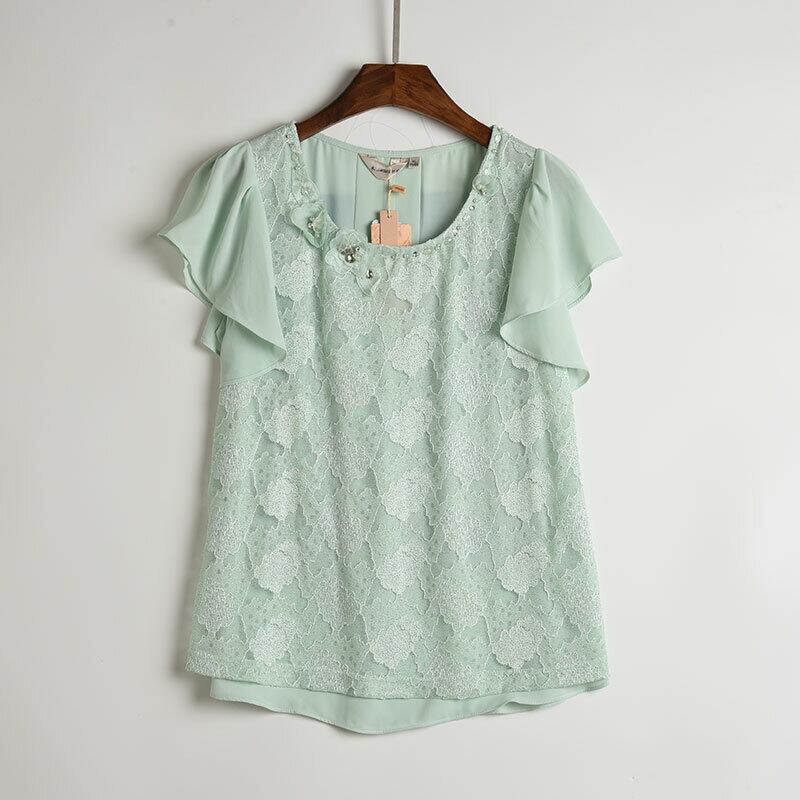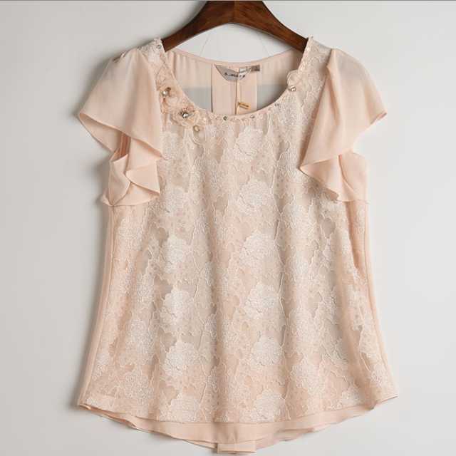 《入荷待ち》春 夏 シフォンブラウス フレア 総レース ガーリー 大人可愛い ピンク ミント ホワイト キュート デート 女子会 お呼ばれ