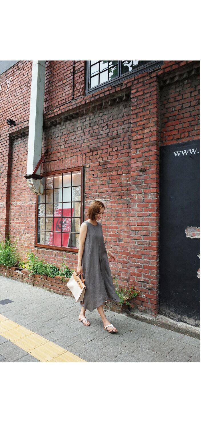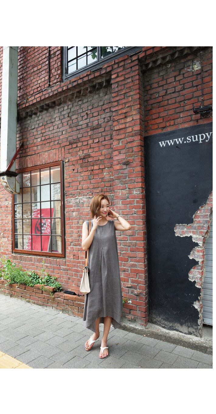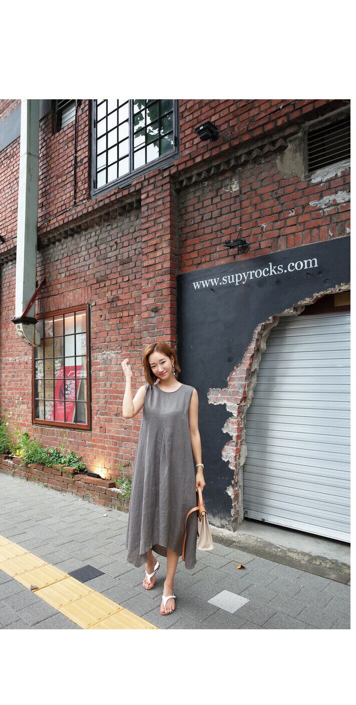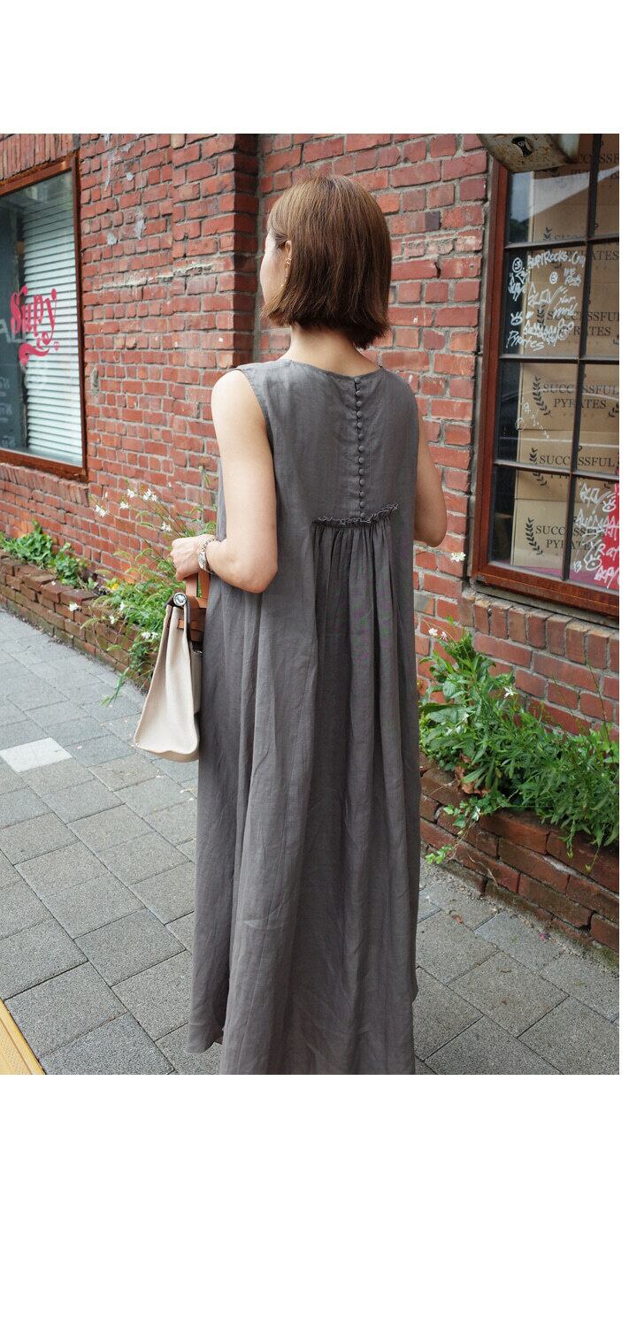 《入荷待ち》ゆったり ナチュラル シンプル ワンピース ノースリーブ ロング丈 ラウンドネック アシメントリー グレー