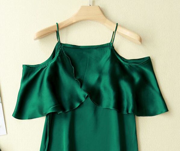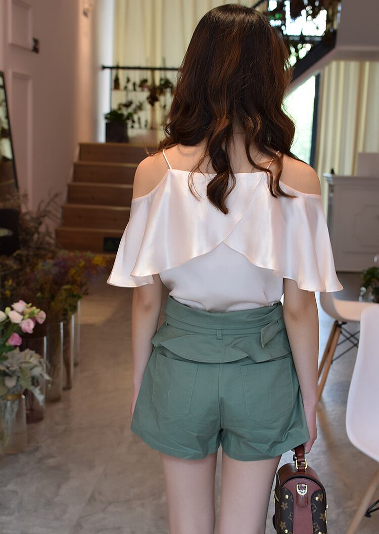 《入荷待ち》オフショルダー トップス サテン シルク フリル セクシー 上品 デート ディナー お呼ばれ ホワイト グリーン