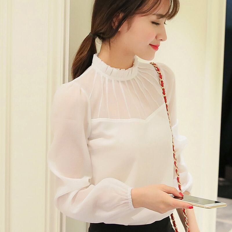 ≪入荷待ち≫シフォンシャツ ブラウス シースルー ハイネック 長袖 きれいめ シンプル 大きいサイズ ホワイト ブラック