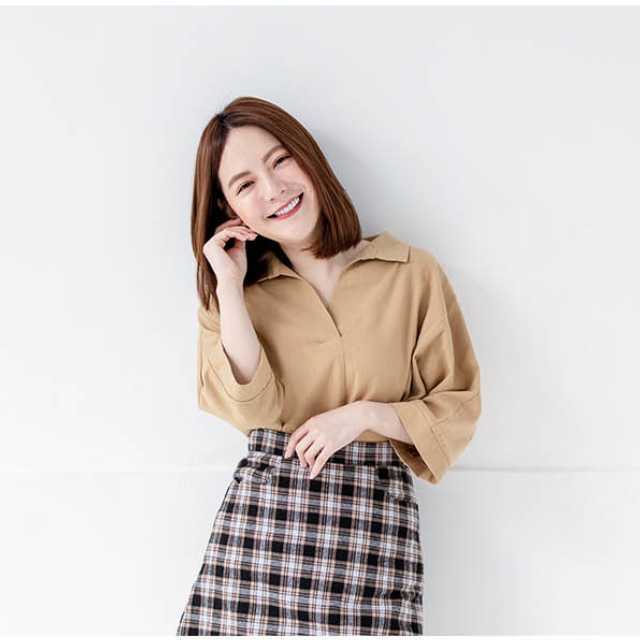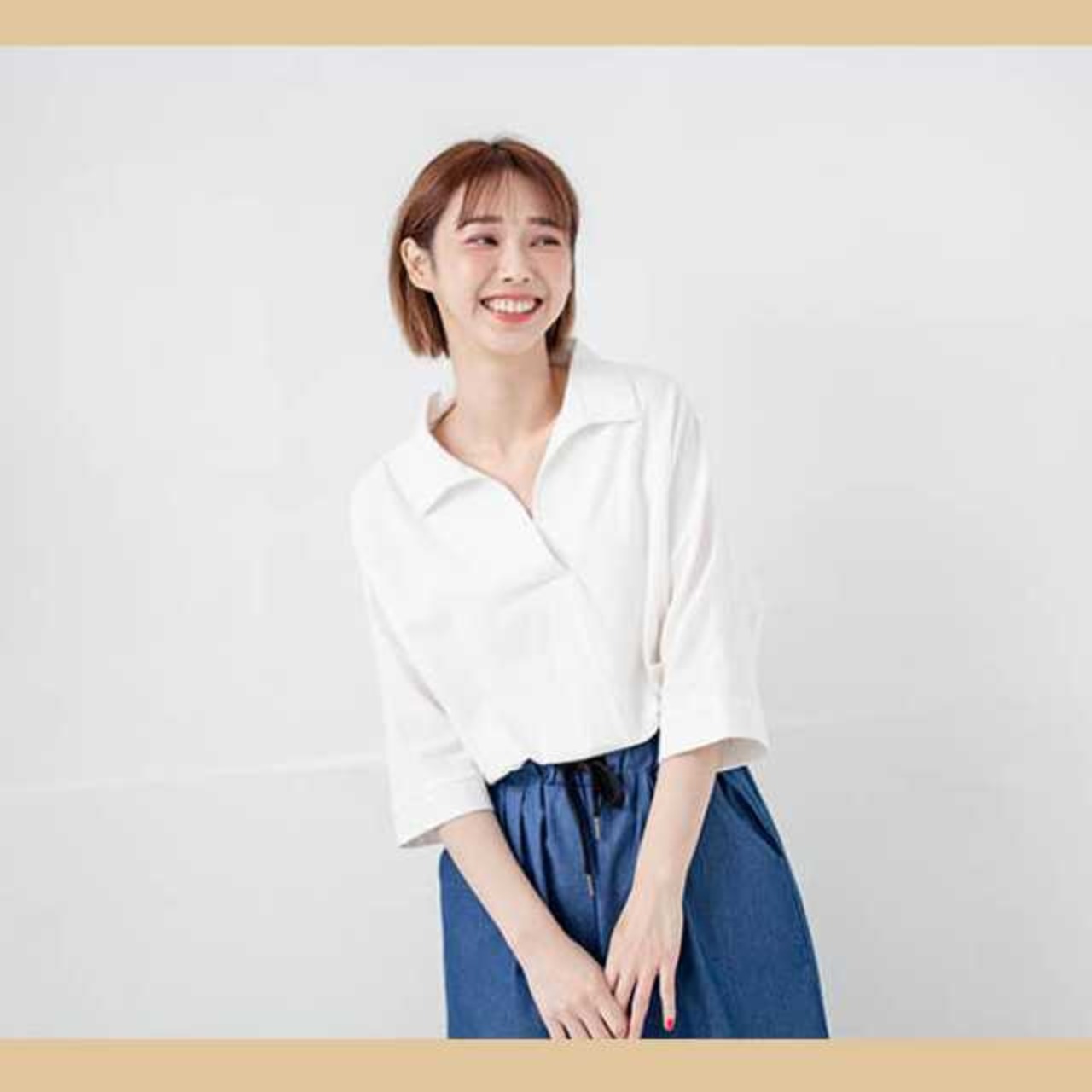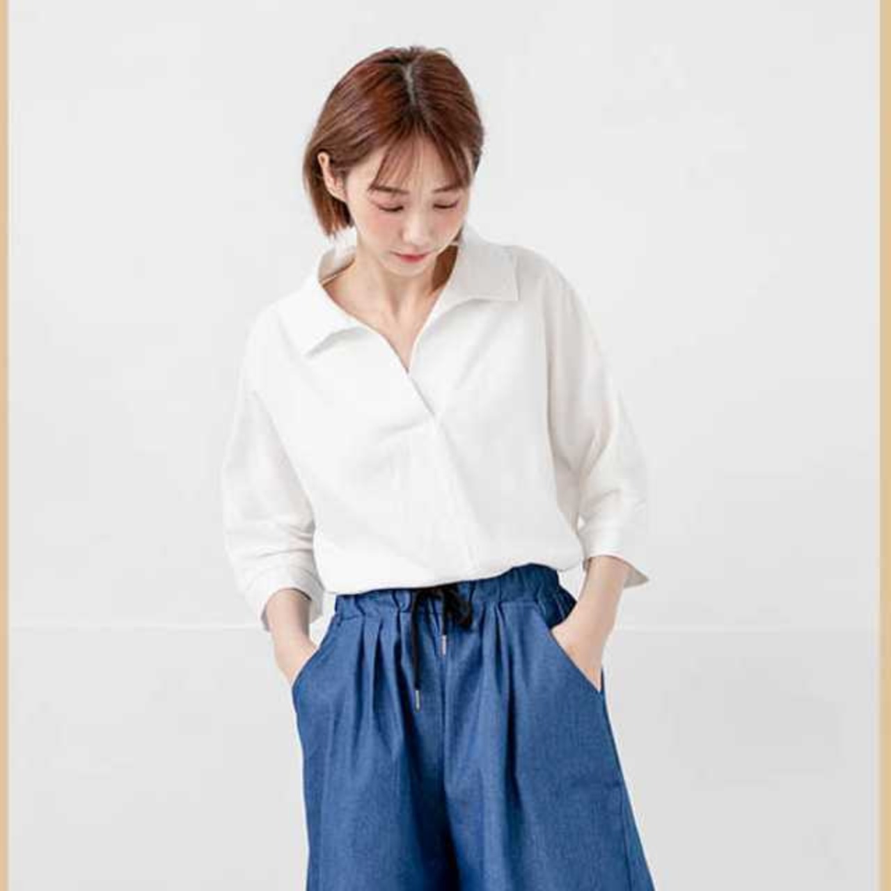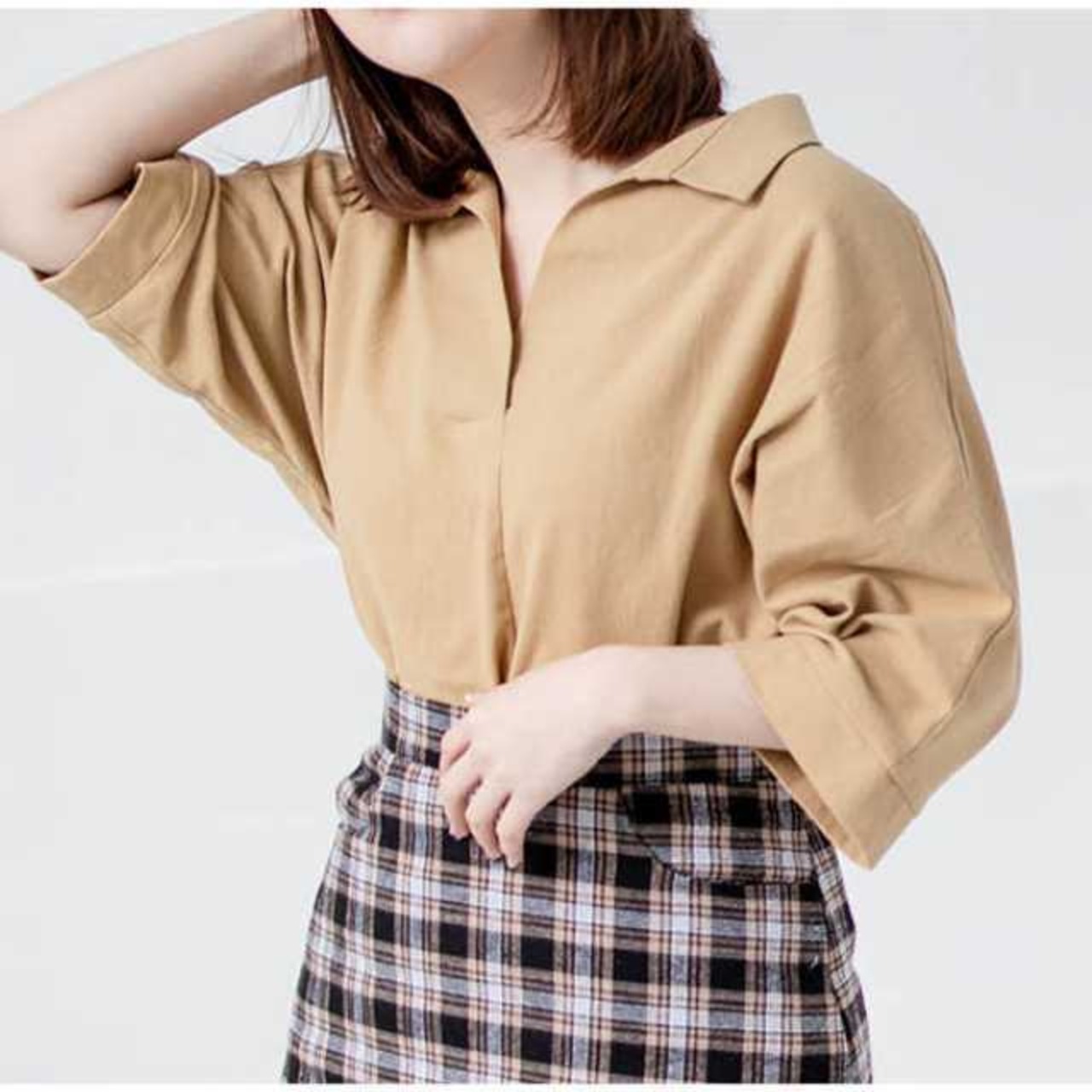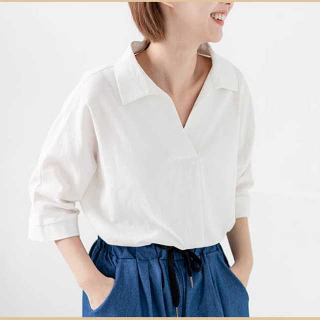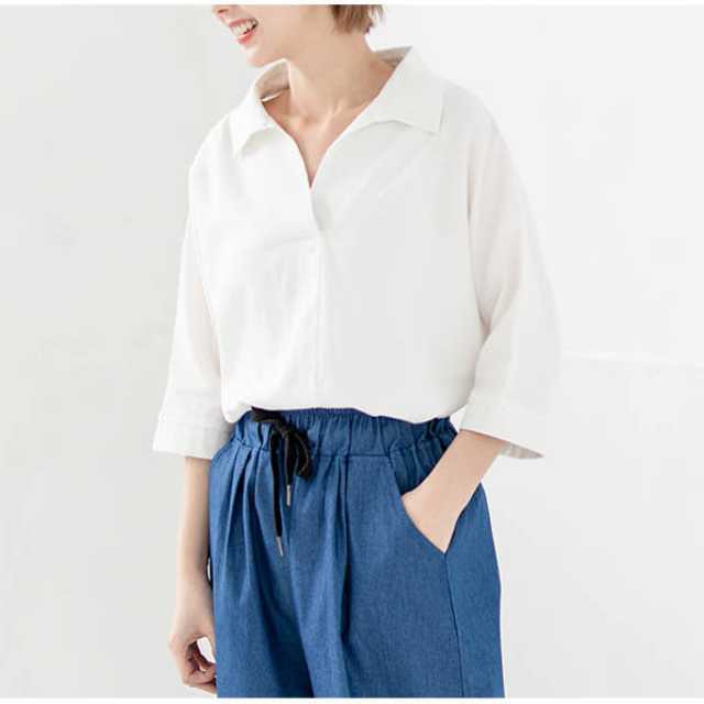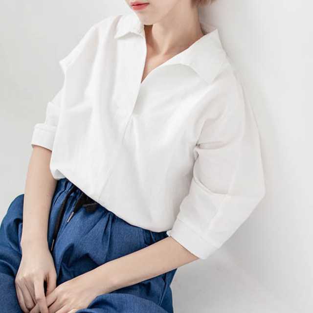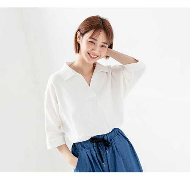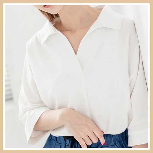 《入荷待ち》シャツ ブラウス Vネック 七分袖 カジュアル シンプル ホワイト ベージュ キレイめ 通勤 オフィス