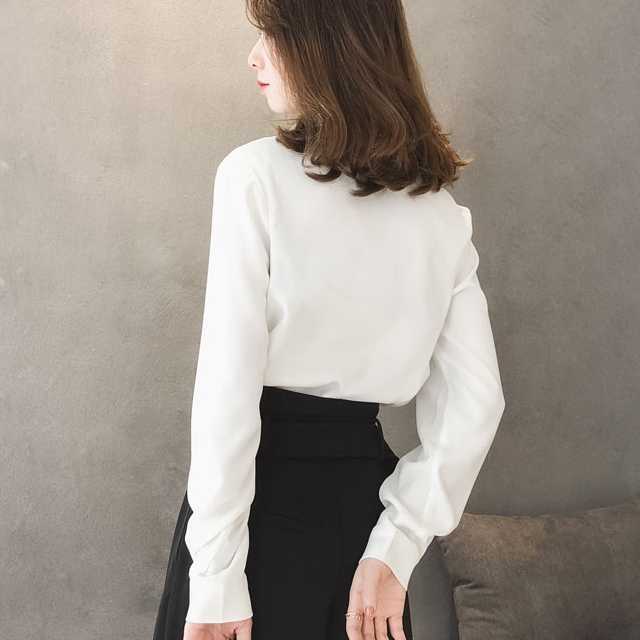 《入荷待ち》プルオーバーシャツ 襟付 長袖 シンプル きれいめ ホワイト 入園 卒園 ベーシック 通勤 オフィス