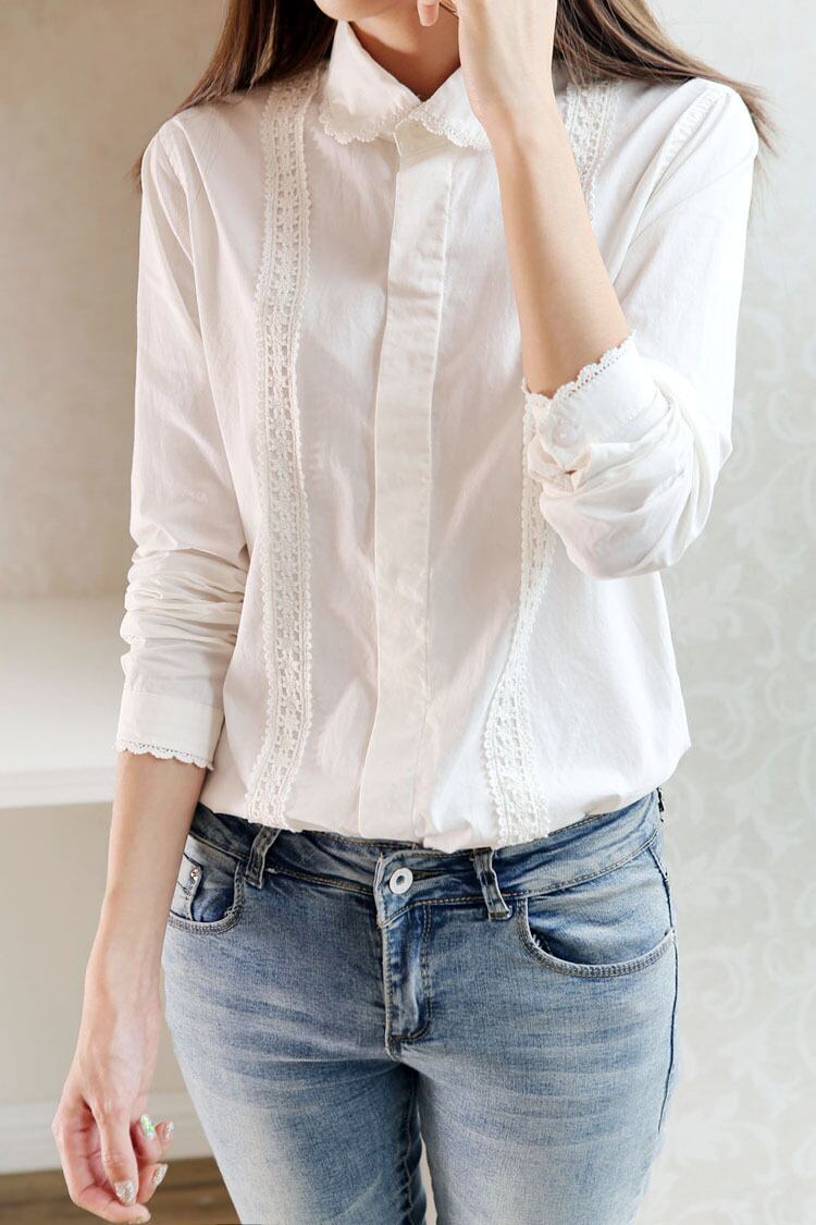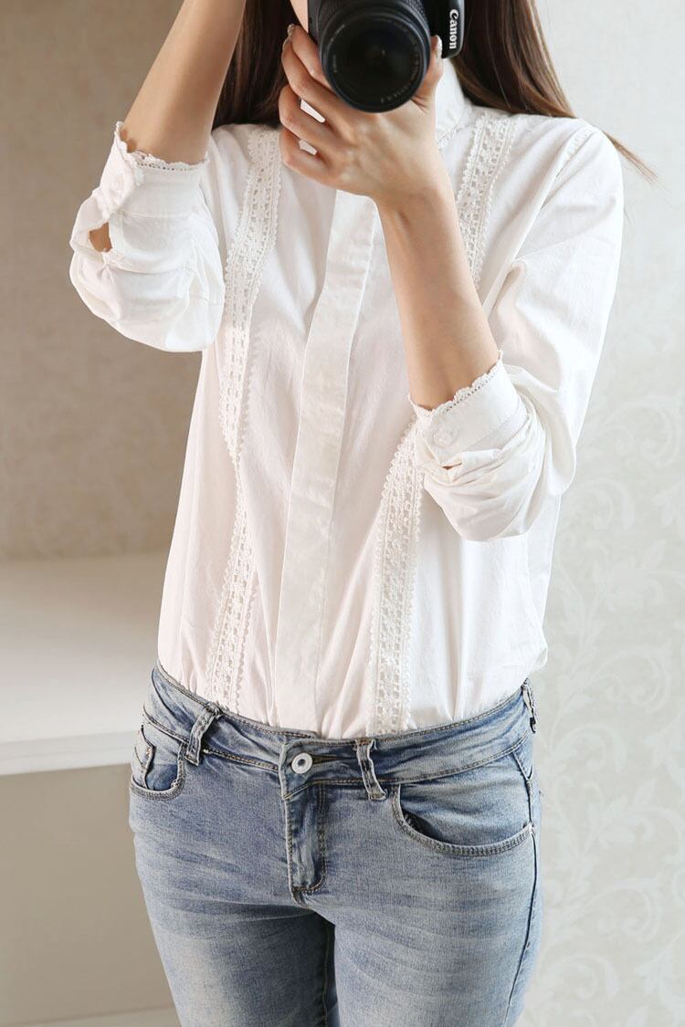 《入荷待ち》レースシャツ ブラウス 襟付 七分袖 シンプル フェミニン ホワイト 通勤 フラワーモチーフ