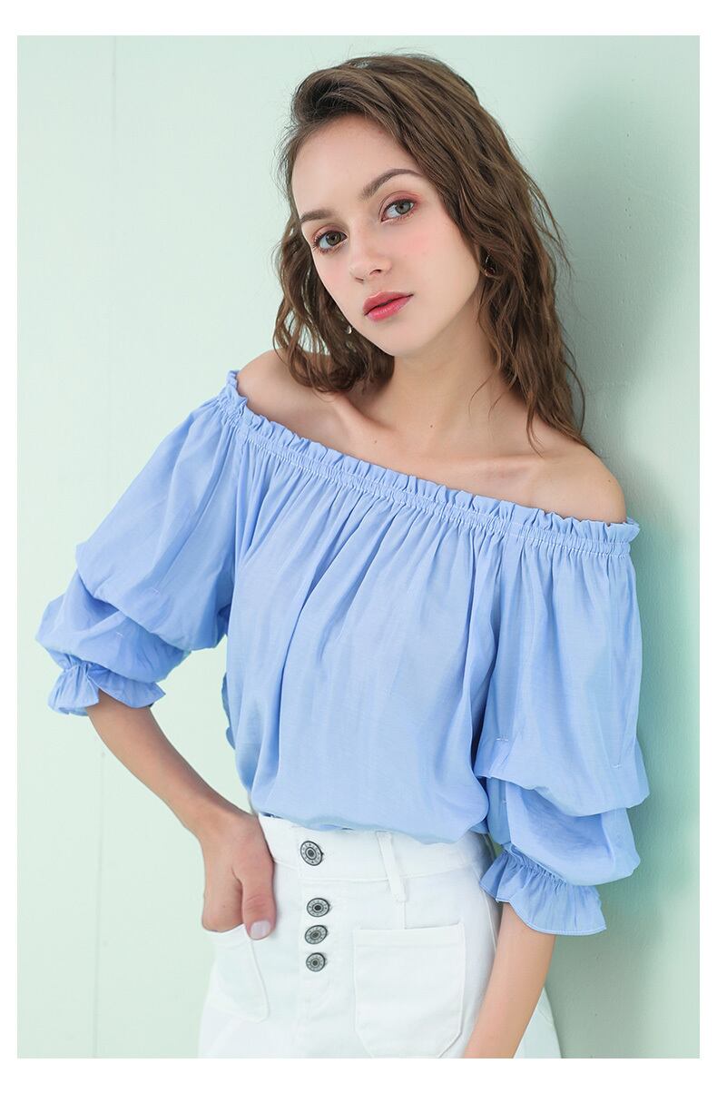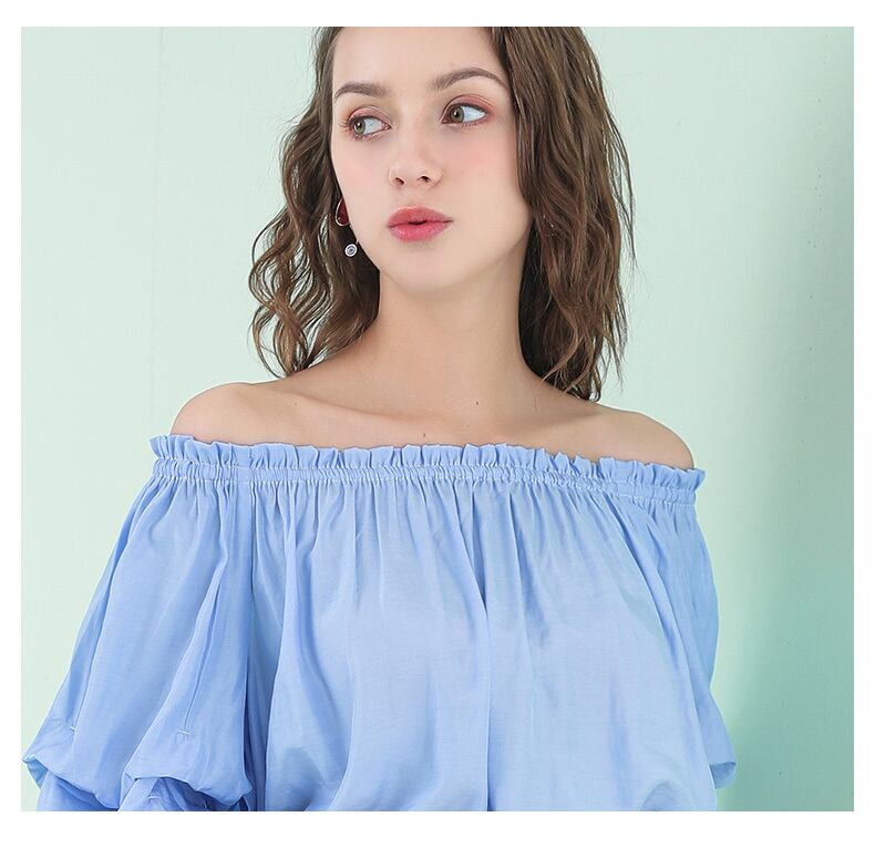 《入荷待ち》オフショルダー シャツ トップス ボリューミー袖 バルーンスリーブ 水色 ブルー フリル ガーリー 大人可愛い デート