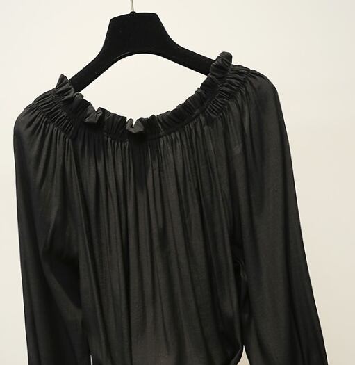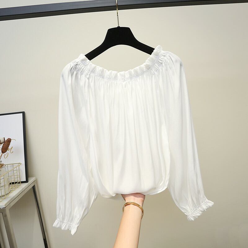 《入荷待ち》オフショルダー トップス ワンショルダー フリル ギャザー バルーンスリーブ リボン ガーリー 大人可愛い ホワイト ブラック ブルー