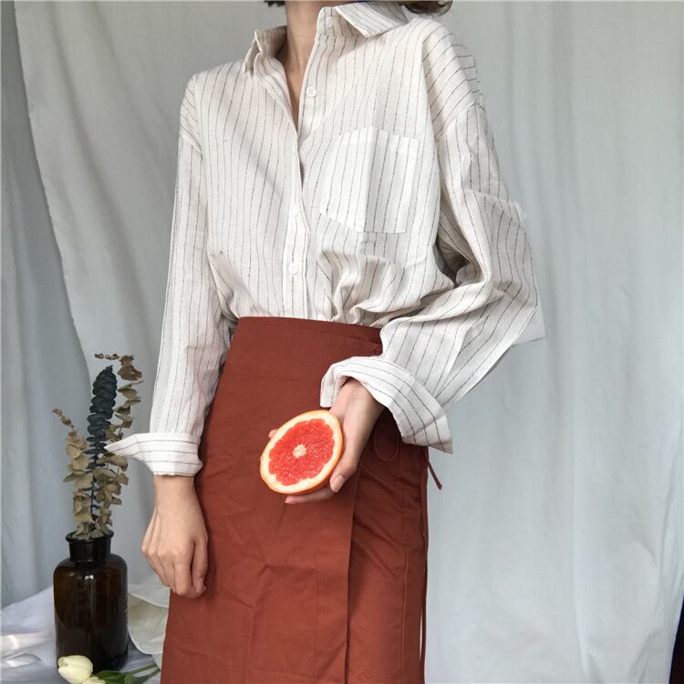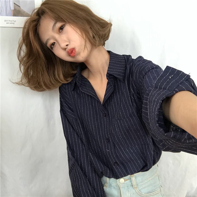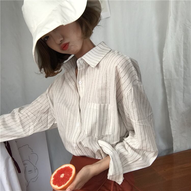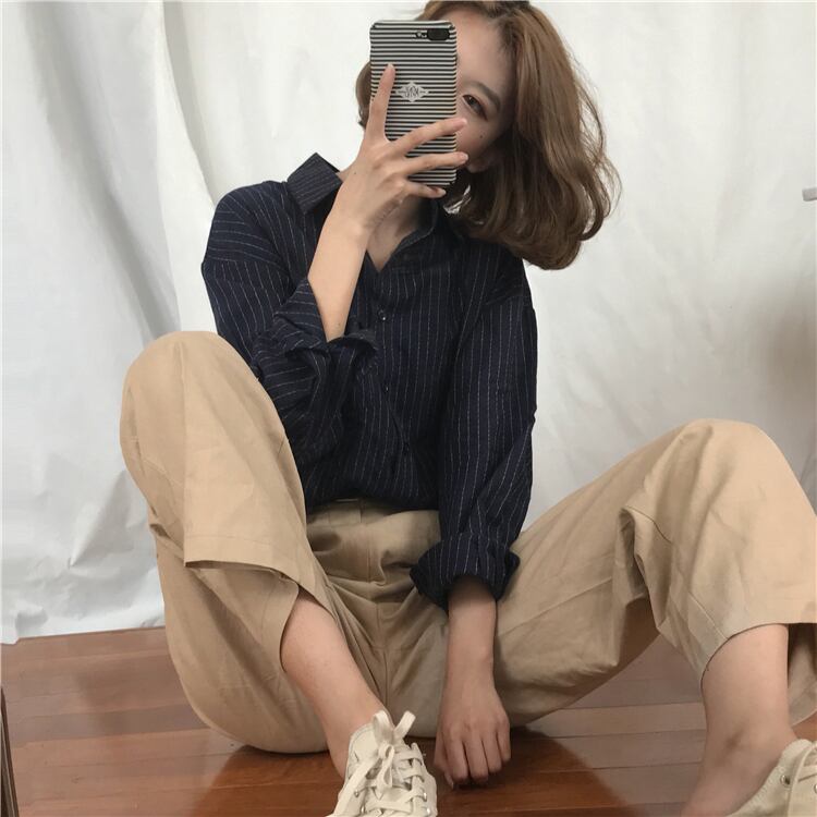《入荷待ち》ストライプ シャツ シンプル オフィスカジュアル ベーシック オフホワイト ネイビー ナチュラル