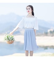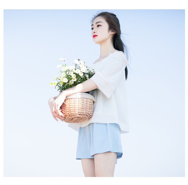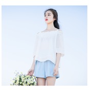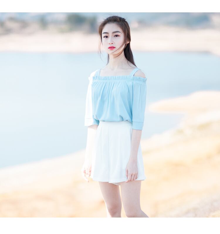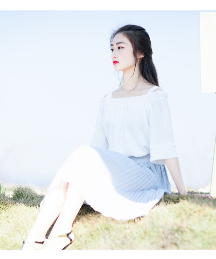 ≪入荷待ち≫春 夏 新作 オフショルダー トップス ガーリー フェミニン ホワイト ブルー 大人可愛い 半袖