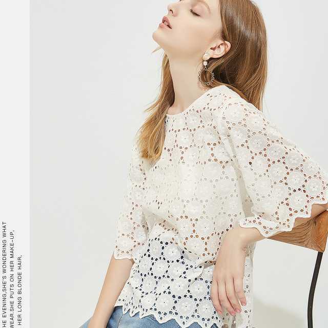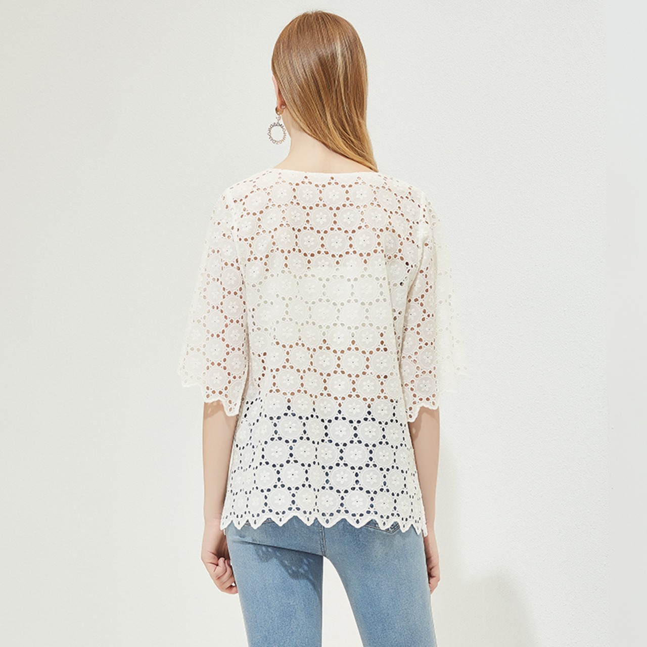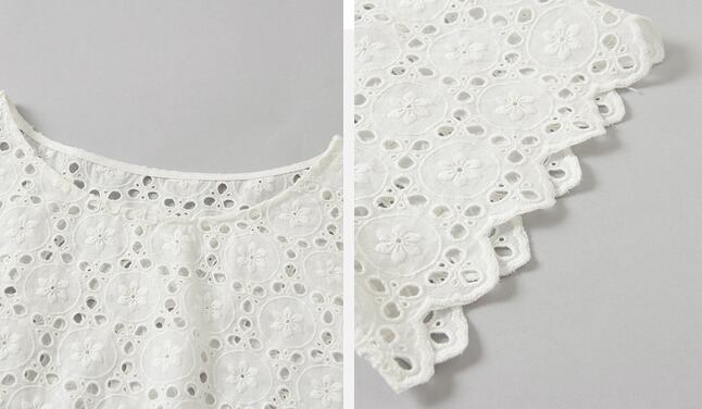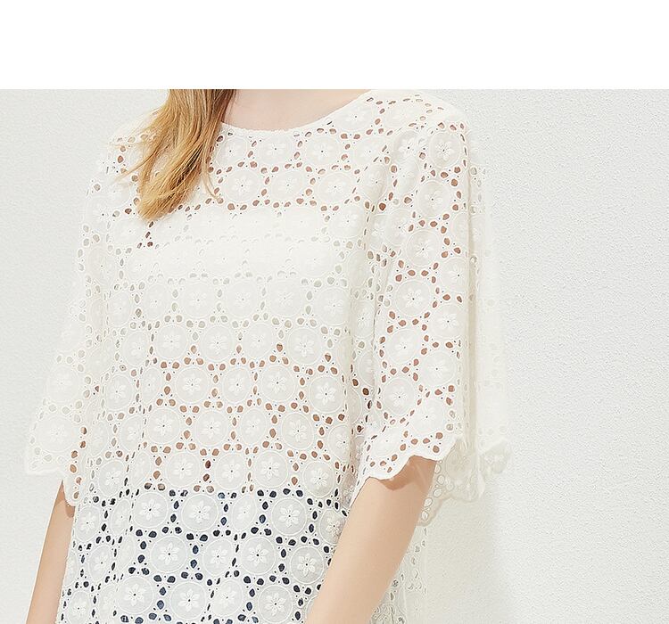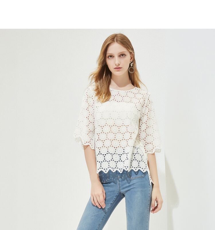 ≪入荷待ち≫レース カットソー トップス 五分丈 ラウンドネック フェミニン ホワイト