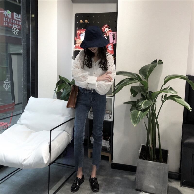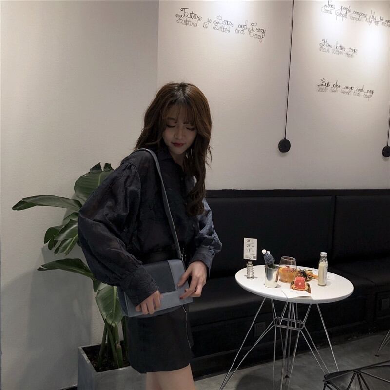 ほどよいボリュームのランタンスリーブ、透け感がこなれ感を演出◎