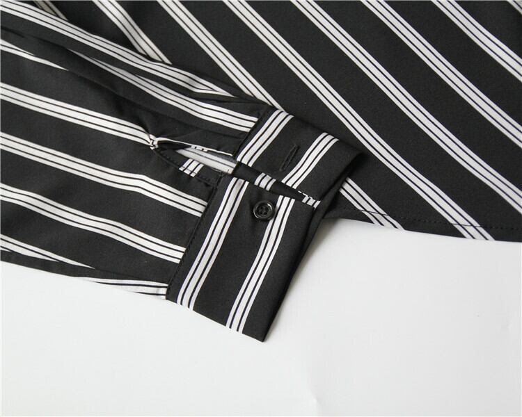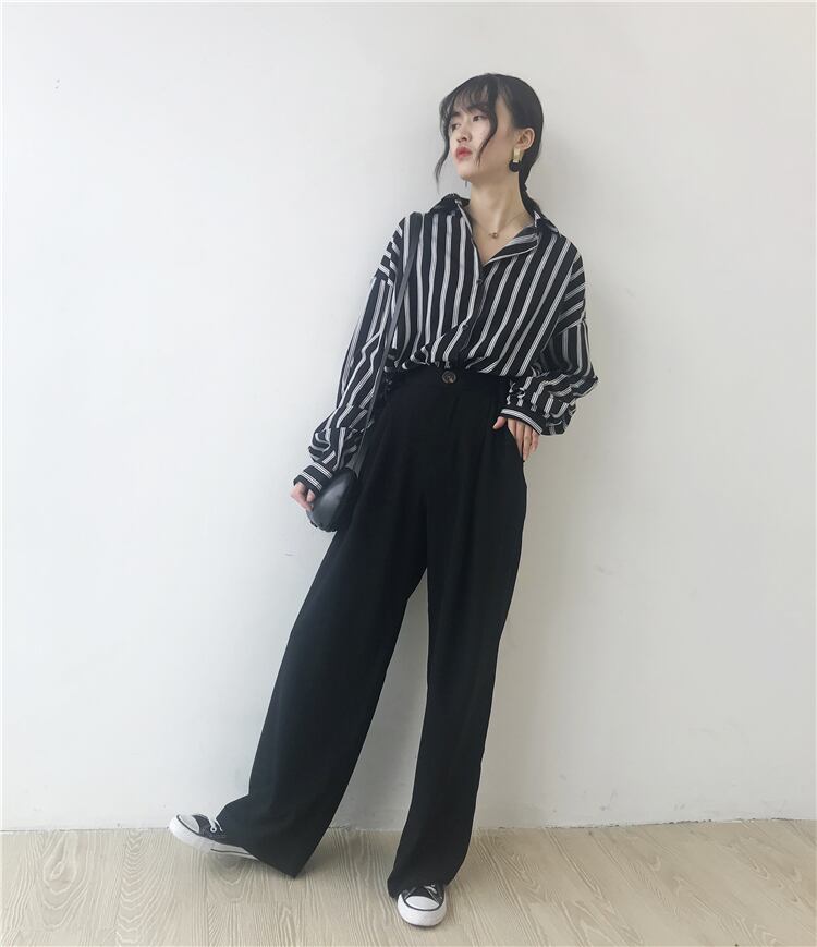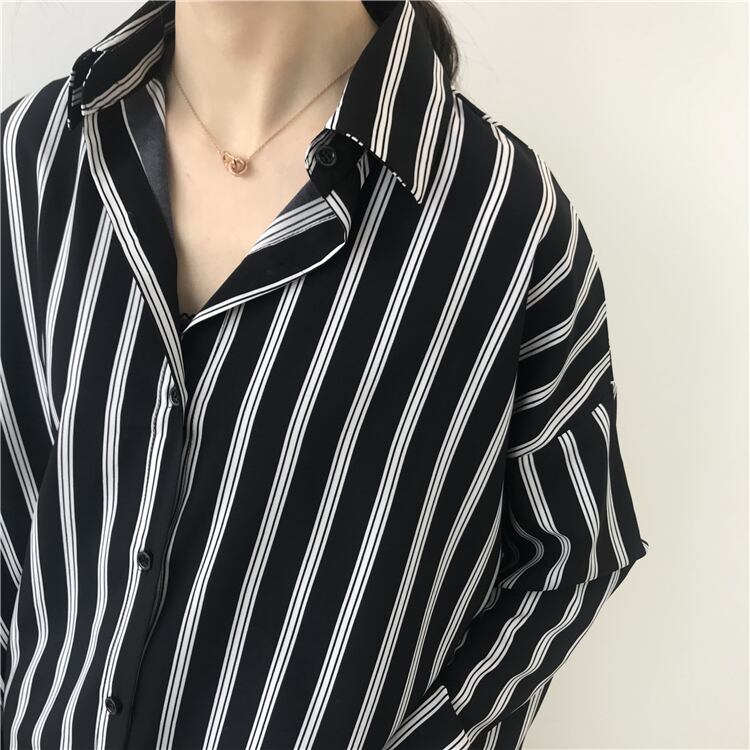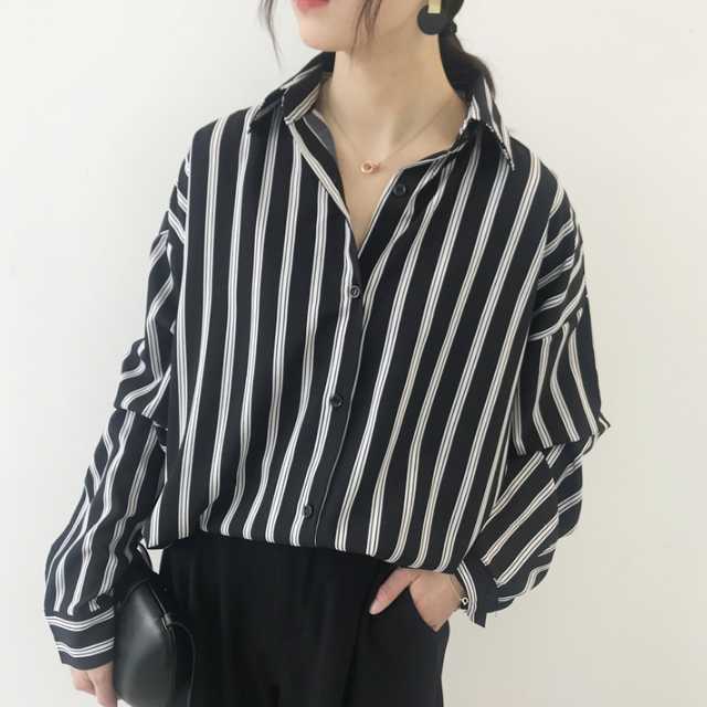 ≪入荷待ち≫ブラック ストライプ シフォン シャツ 長袖 モノトーン こなれ感 ゆったり 通勤 オフィスカジュアル