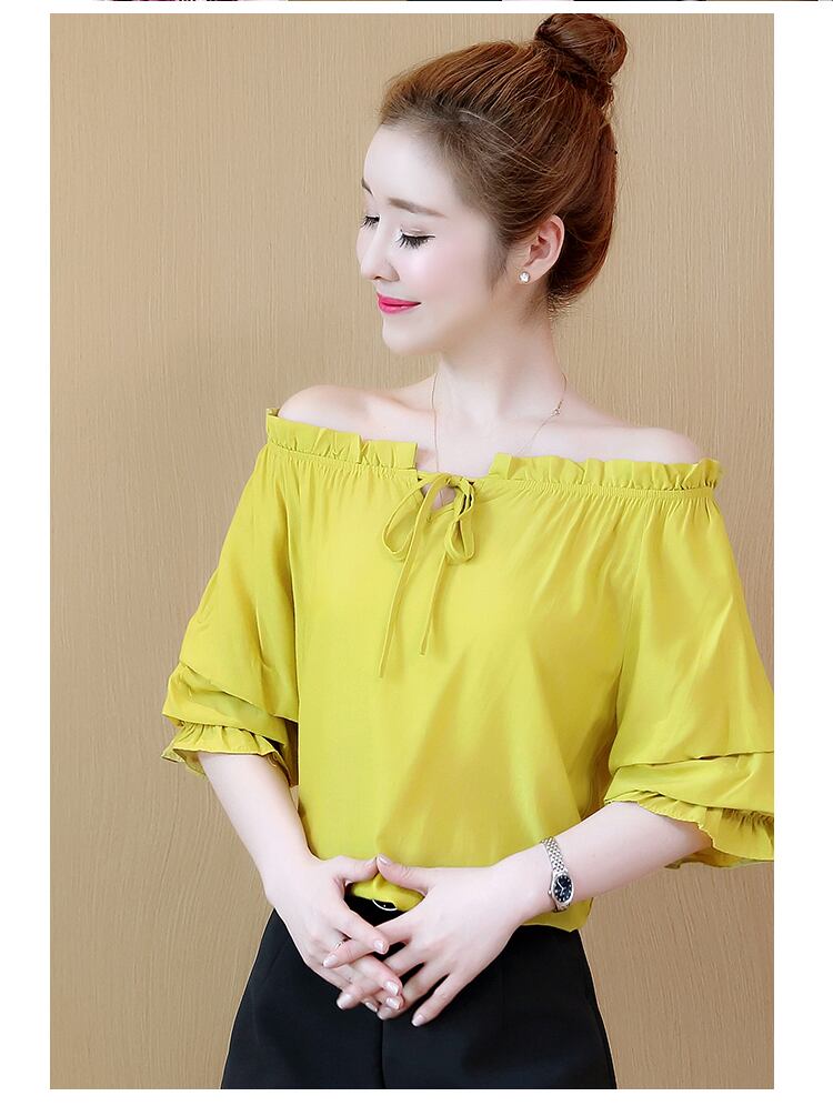 《入荷待ち》オフショルダー トップス リボン ボリューム袖 袖コンシャス バルーンスリーブ ピンク イエロー ガーリー フェミニン ラウンドネック