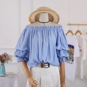 オフショルダーにボリュームのある袖がトレンド感満載のトップスです。