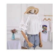 《入荷待ち》オフショルダー トップス ワンショルダー ガーリー フリル キュート ボリューム袖 袖コンシャス ホワイト ピンク ブラック ブルー