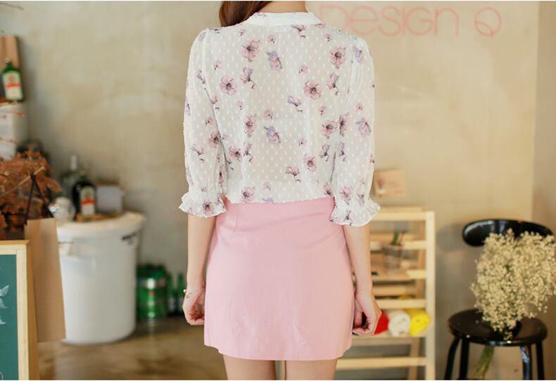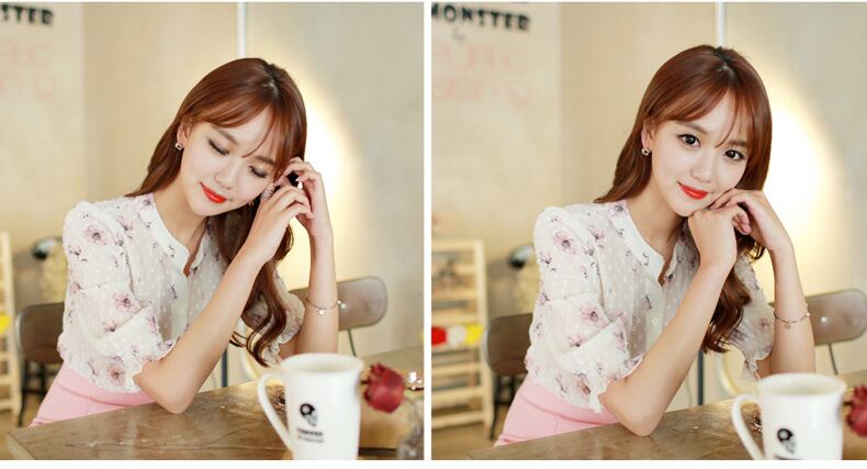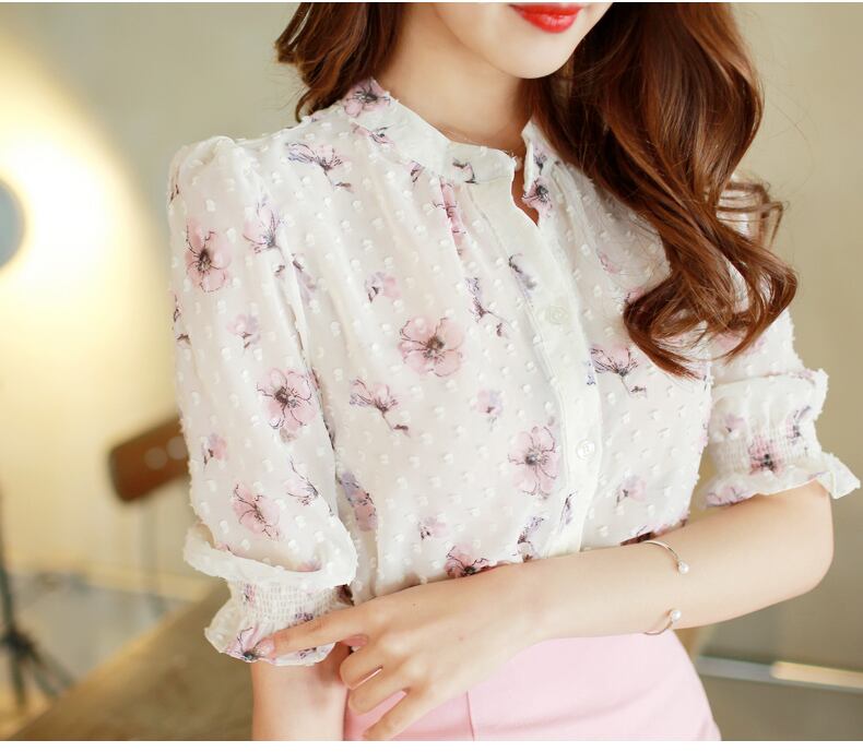 《入荷待ち》半袖 シフォンブラウス 透け感 ドット 花柄 中花柄 フラワー パフスリーブ キュート ガーリー フェミニン お呼ばれ デート