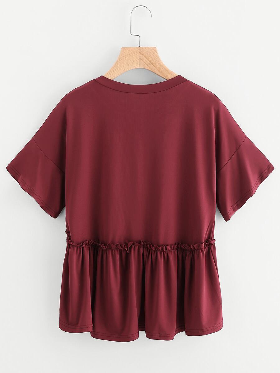 《入荷待ち》シンプル こなれ Tシャツ フリル 切り替え ブラック ホワイト レッド 半袖 ラウンドネック