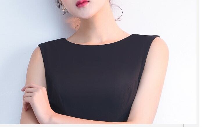 大きいサイズ イブニングドレス フォーマル シンプル シック ワンピース ノースリーブ ラウンドネック 無地 リボン ウエストマーク ハイウエスト