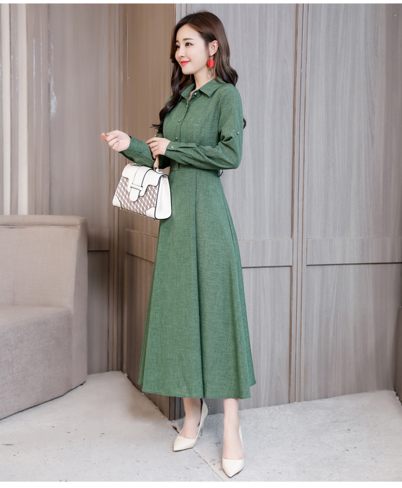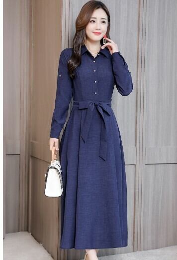 《入荷待ち》大きいサイズ マキシ丈 ワンピース お呼ばれ ガーリー シンプル 大人可愛い 長袖 ウエストマーク リボン