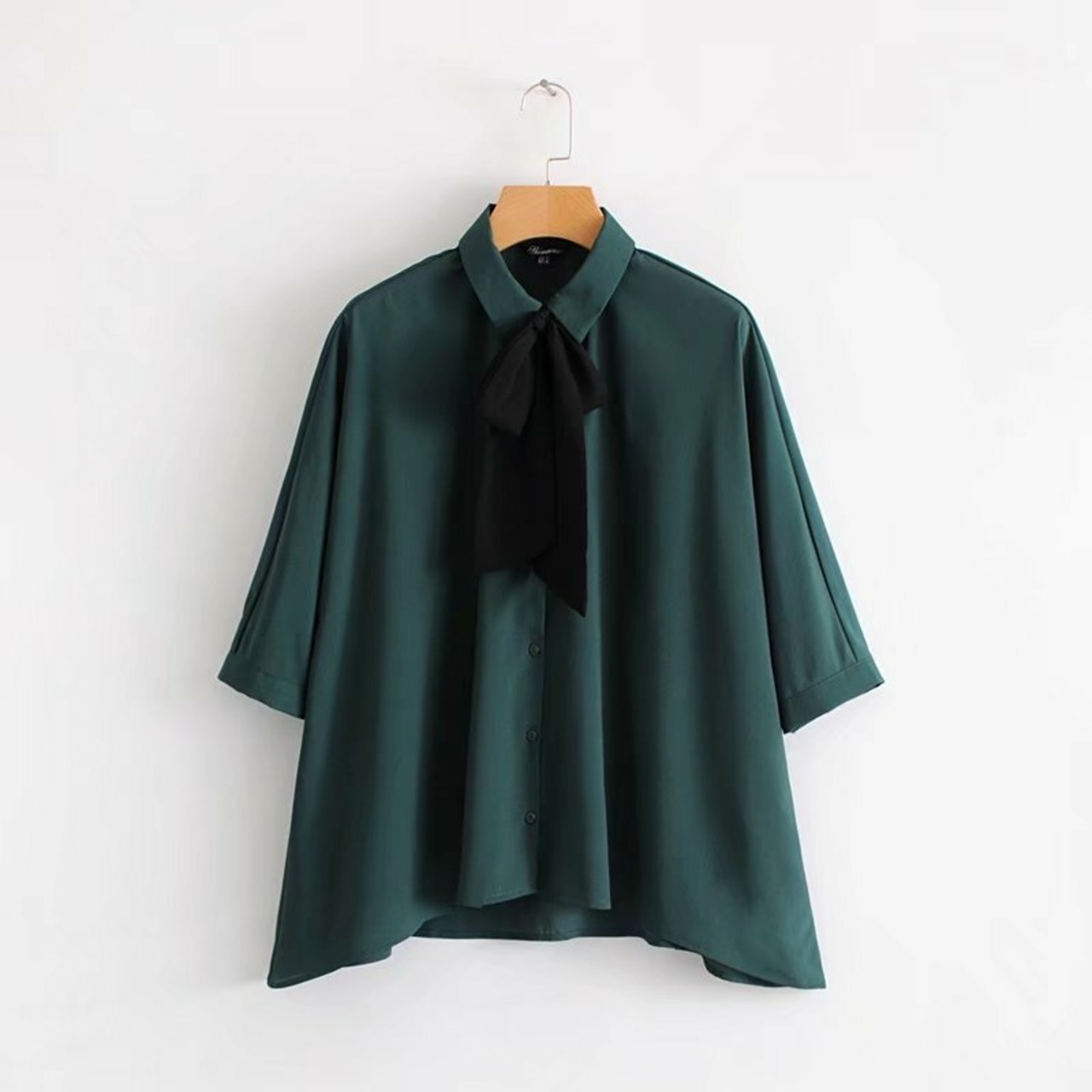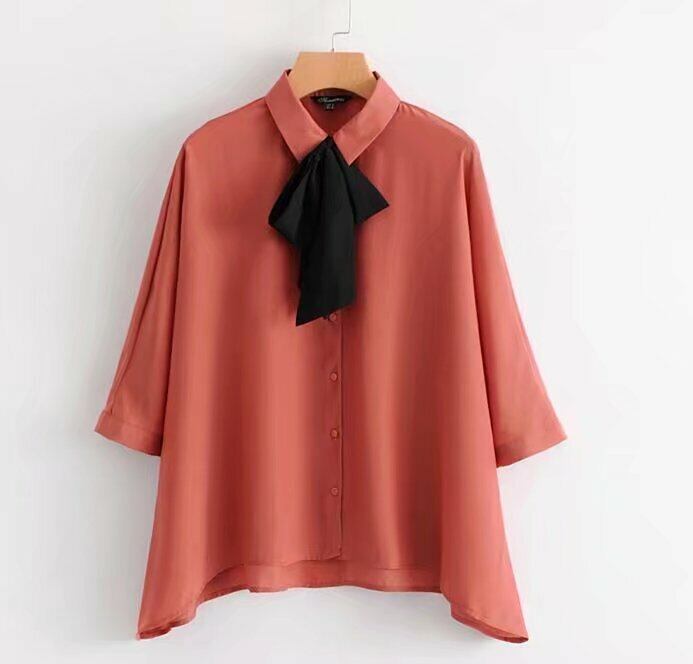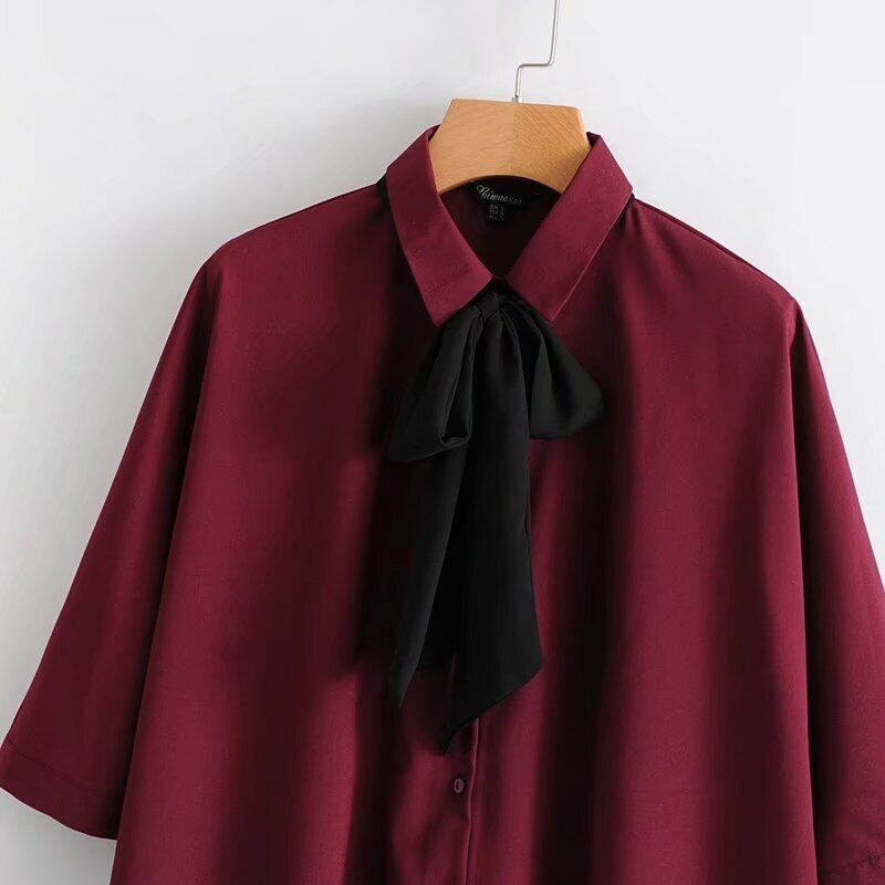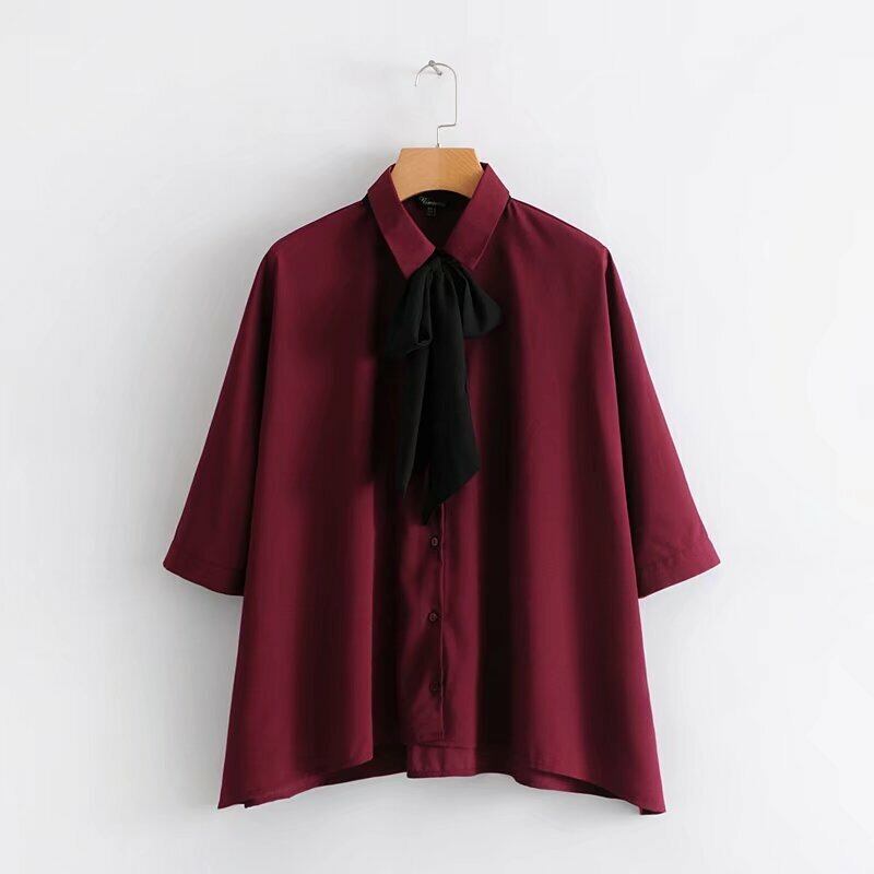 《入荷待ち》シフォンブラウス シャツ リボン バイカラー ツートン 半袖 こなれ感 ガーリー シンプル 春 夏 秋