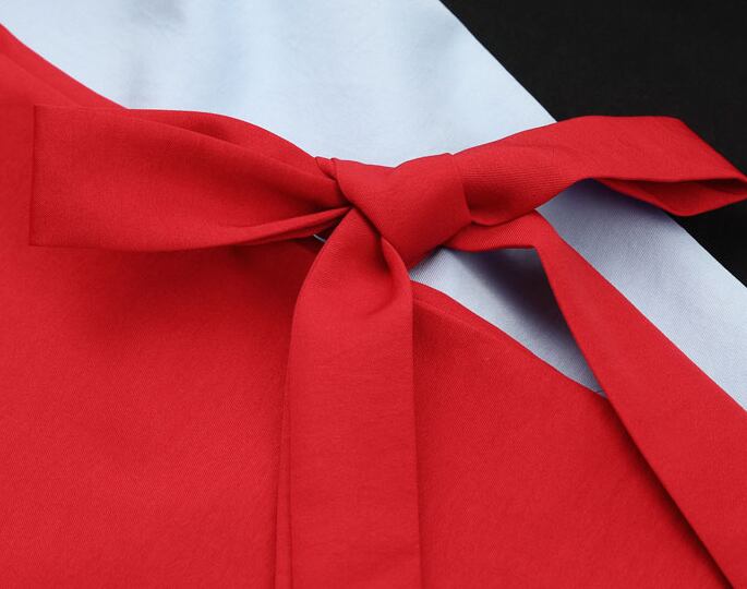 《再入荷》 大きいサイズ シンプル セレブ ミニ丈 ワンピース 半袖 バルーンスリーブ ウエストマーク リボン ブラック レッド シャツワンピース