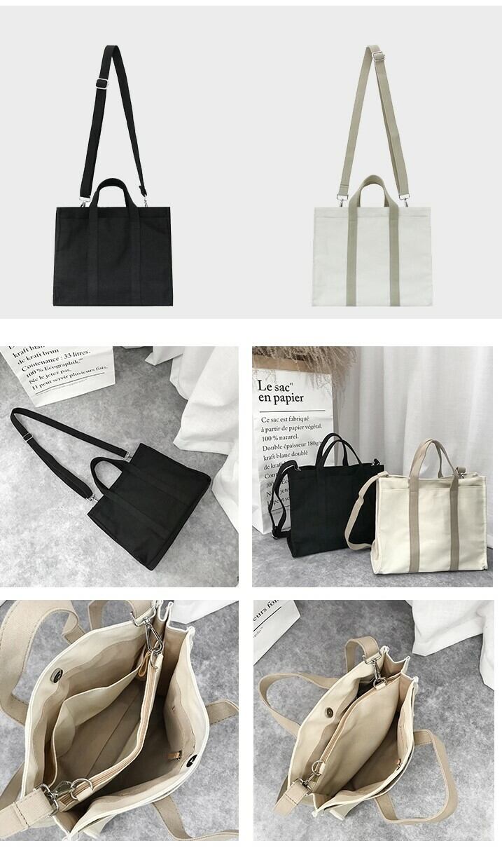 キャンバス トートバッグ ショルダー マルチポケット 2way シンプル カジュアル 無地