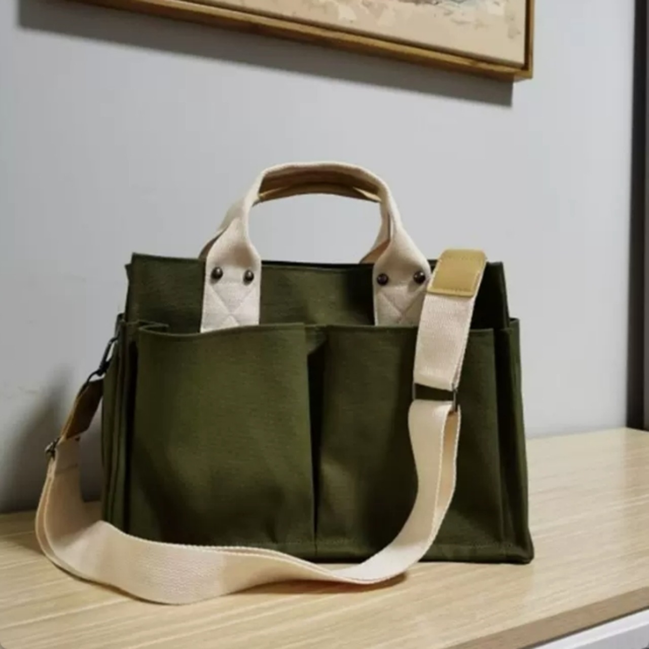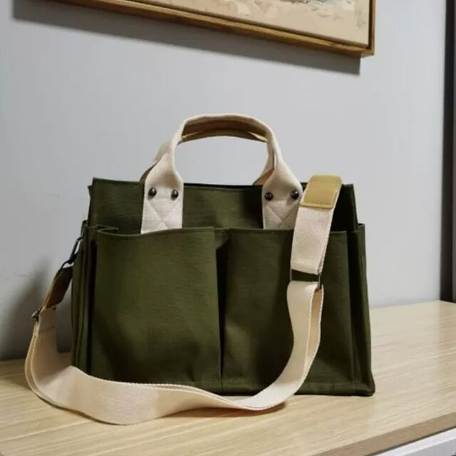 キャンバスバッグ トートバッグ A4対応 ビジネス 多機能 収納 肩掛け 2way 通勤 通学