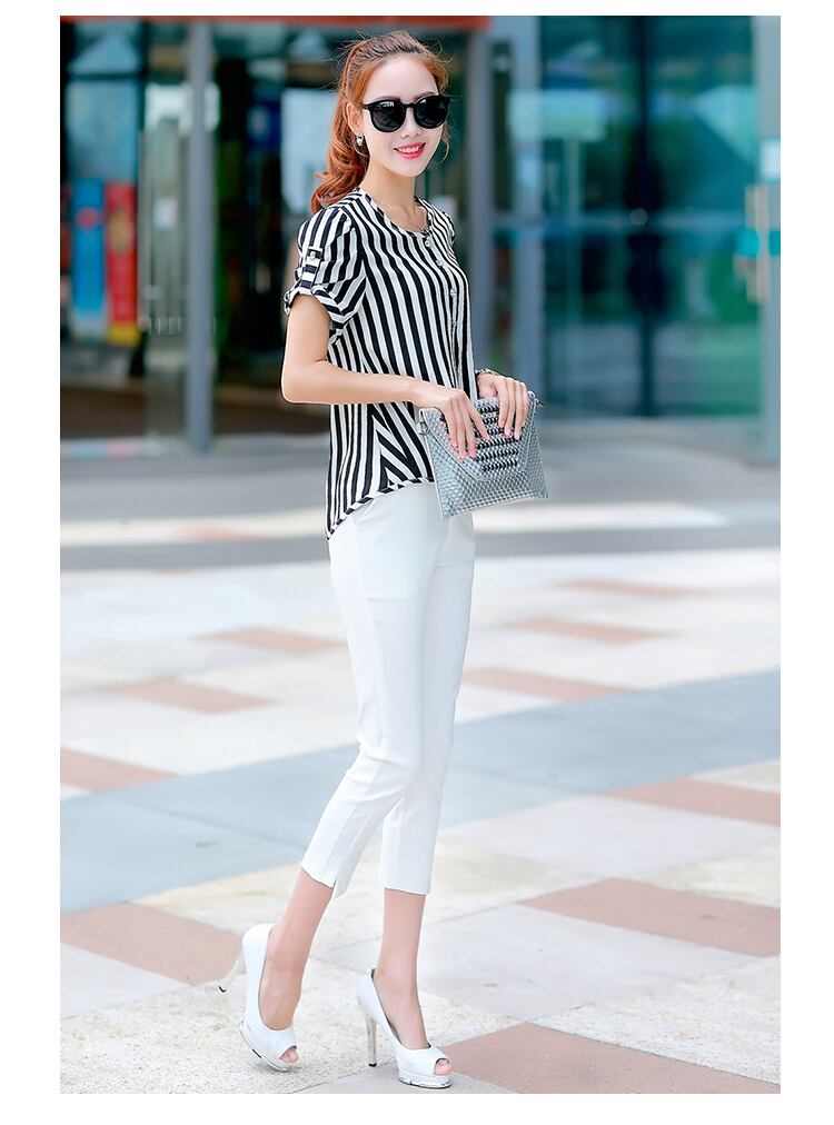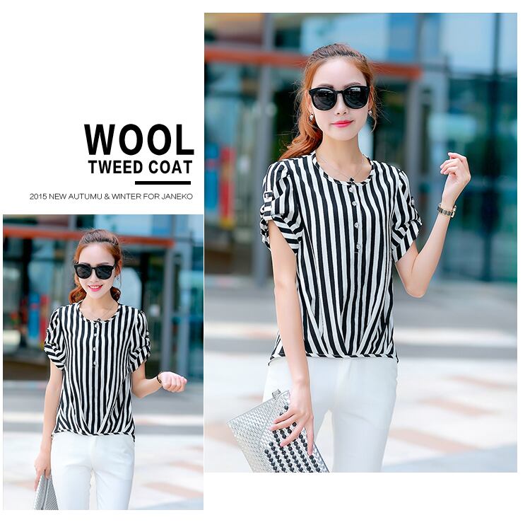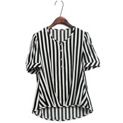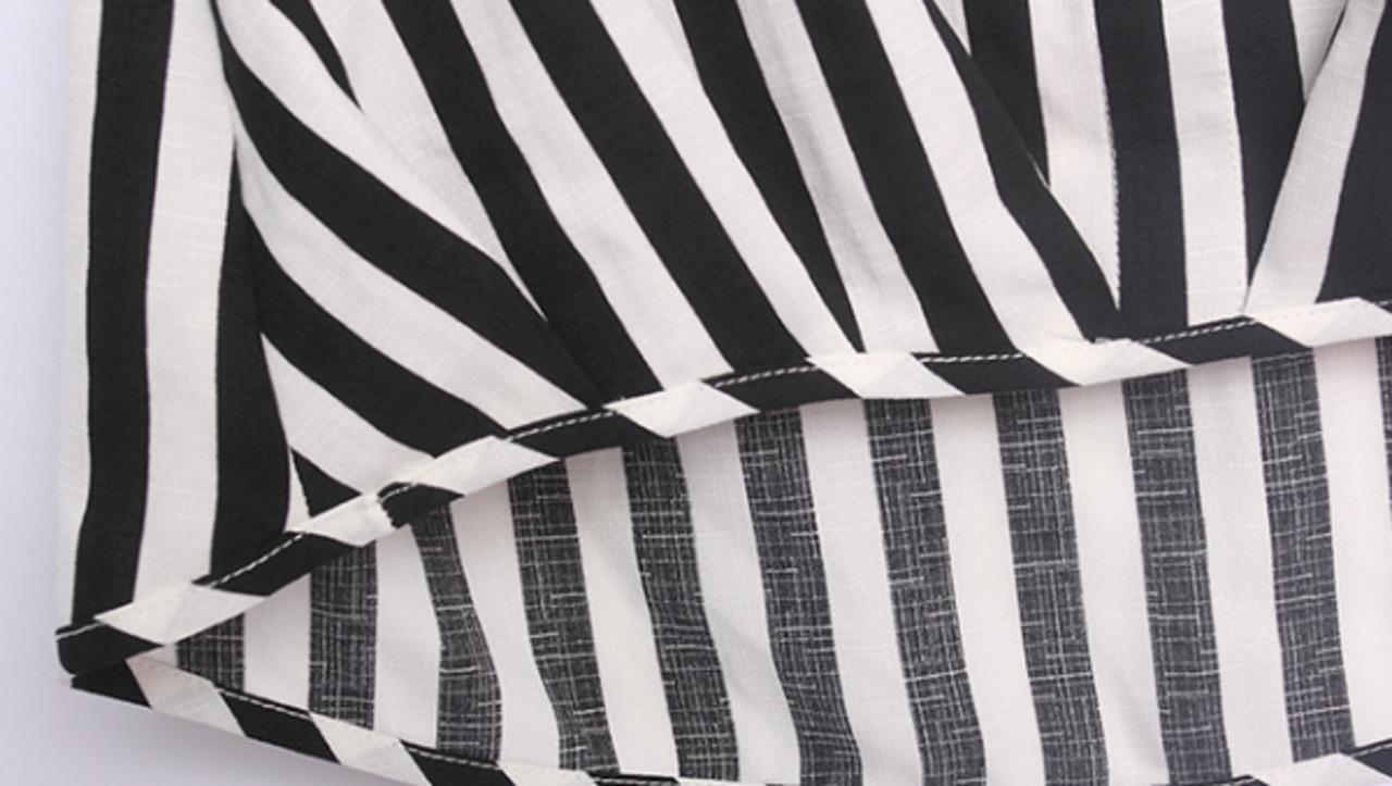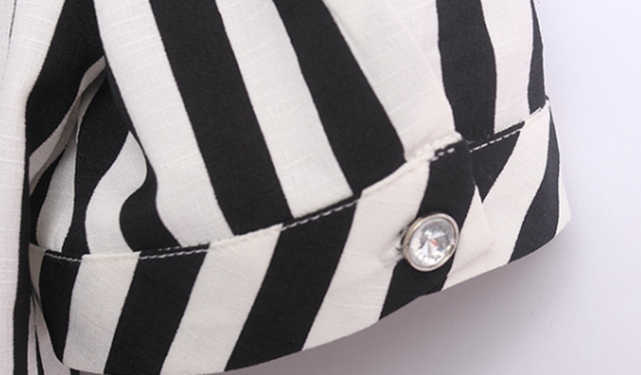 《入荷待ち》ストライプ シャツ ブラウス パフスリーブ モノトーン ブラック ホワイト 大きいサイズ キレイめ デート 女子会 オフィス